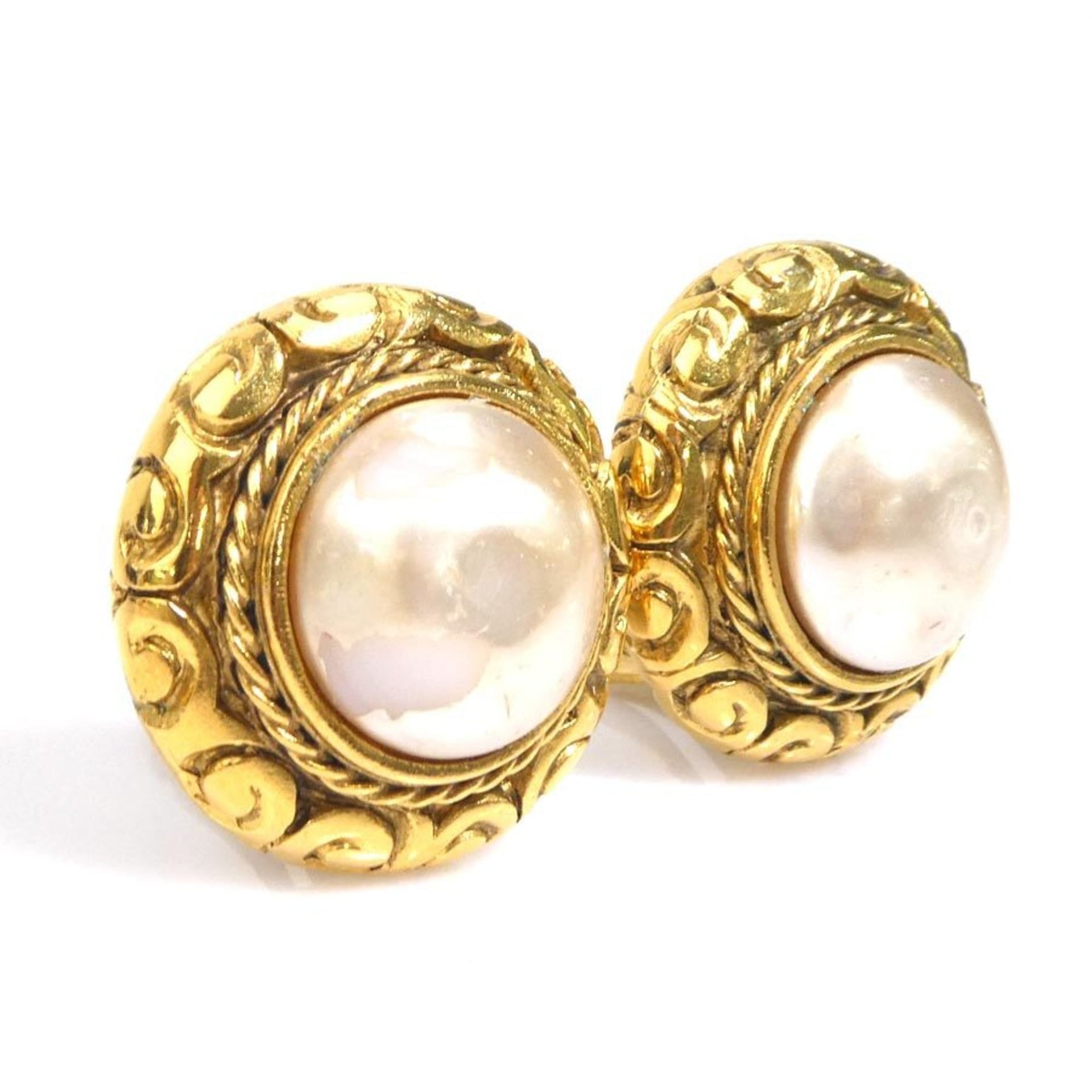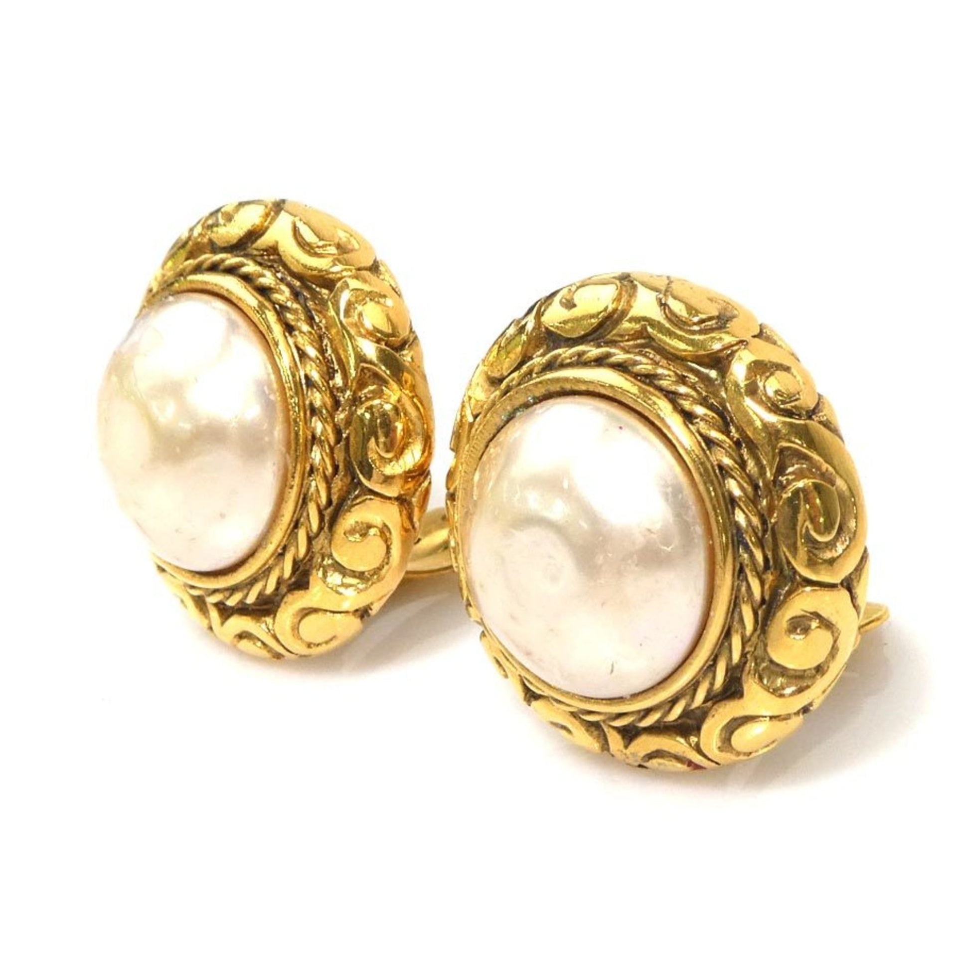 CHANEL Women\'s Metal Earrings with Faux Pearls in Gold and Off-White (e61047g)