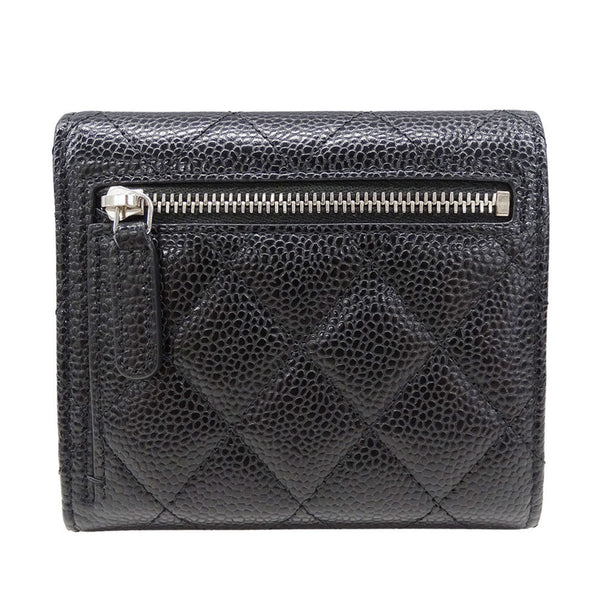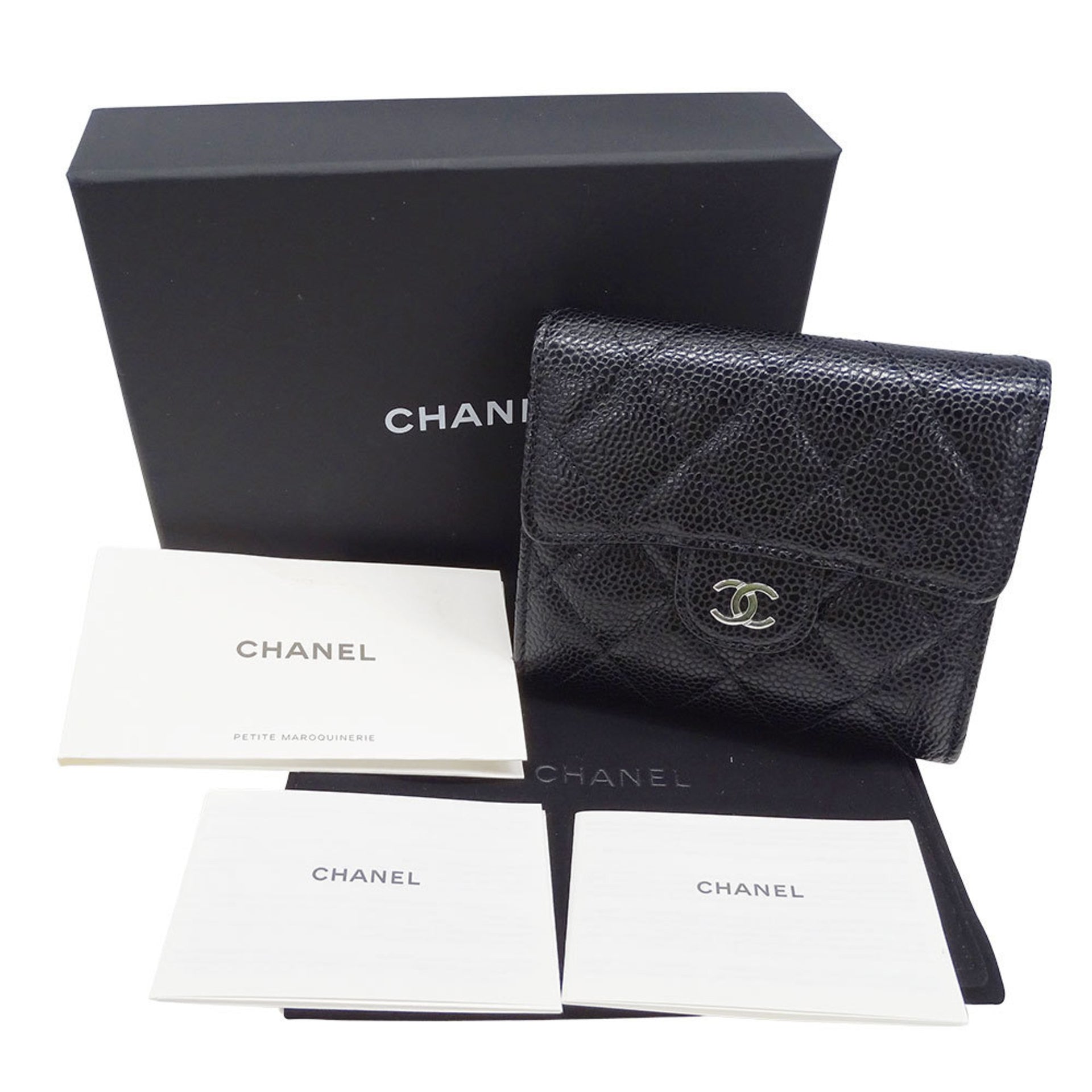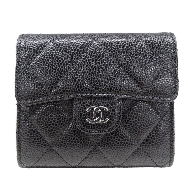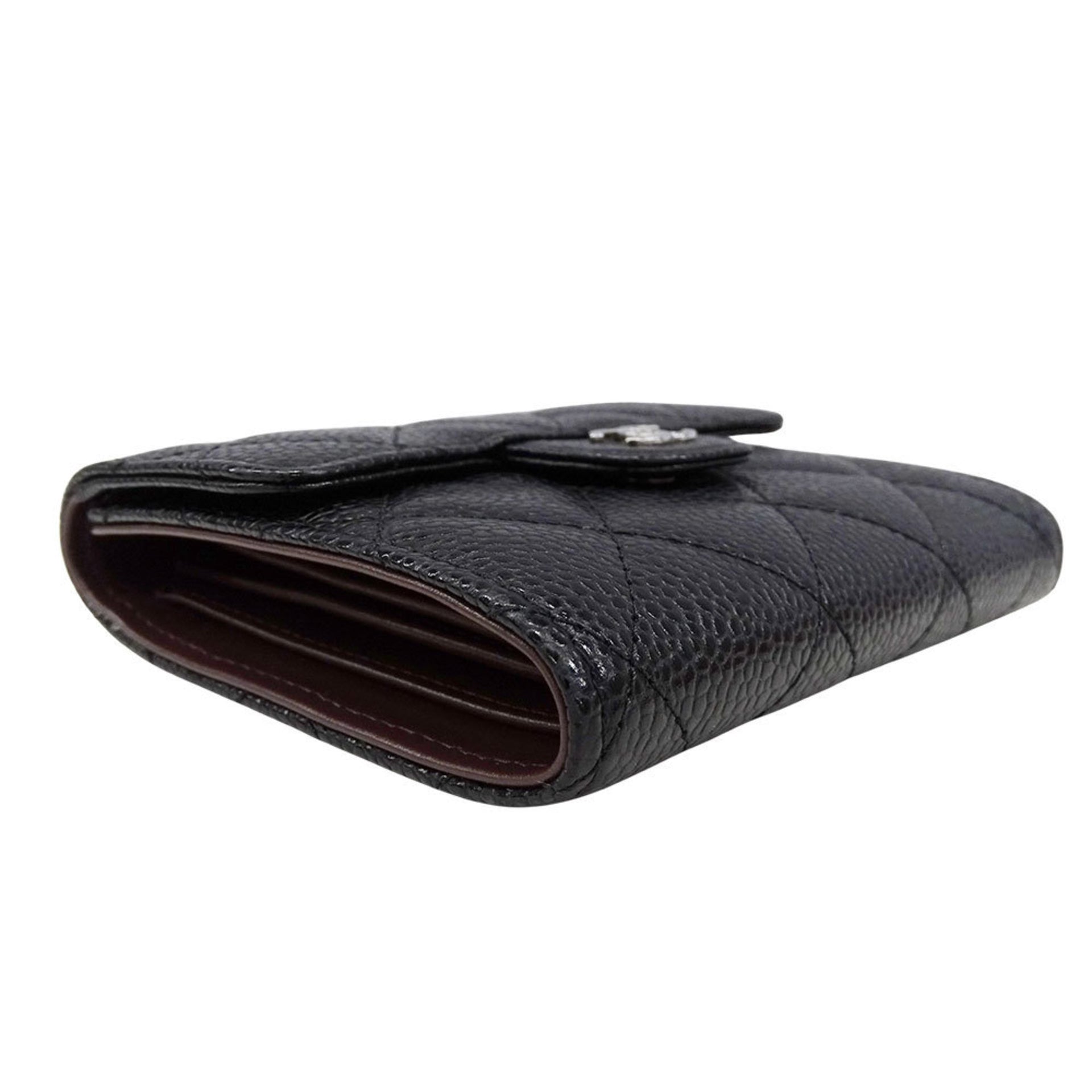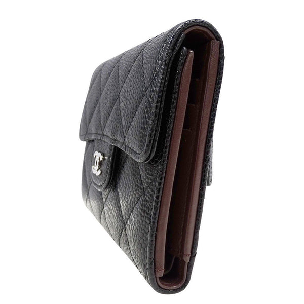 CHANEL Women\'s Wallet, Bi-fold Matelasse, Caviar Skin, Black Quilted