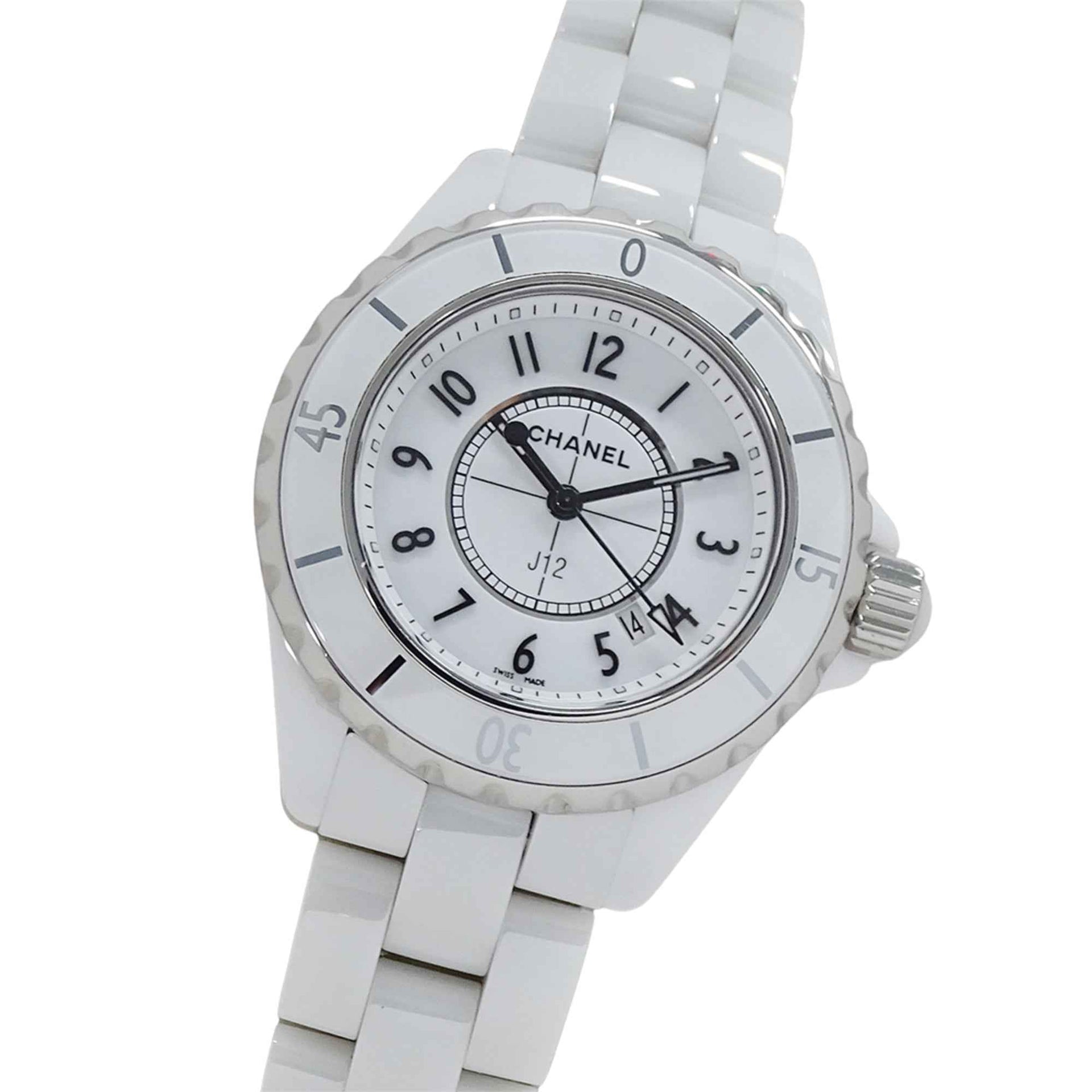 CHANEL Women\'s Watch J12 Date Quartz QZ Stainless Steel with White Ceramic Movement (H0968) Polished