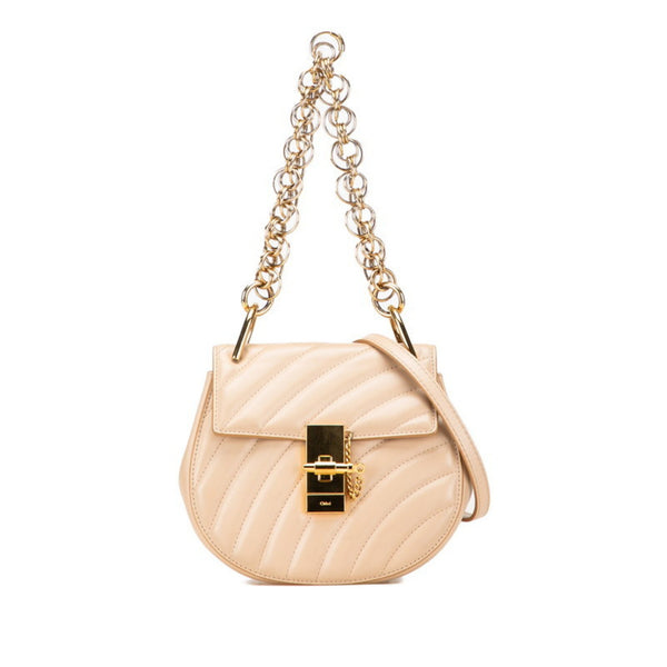 Chloé Chloe Drew Jeweled Handbag/Shoulder Bag, 2-Way, Beige and Gold Leather, Women\'s
