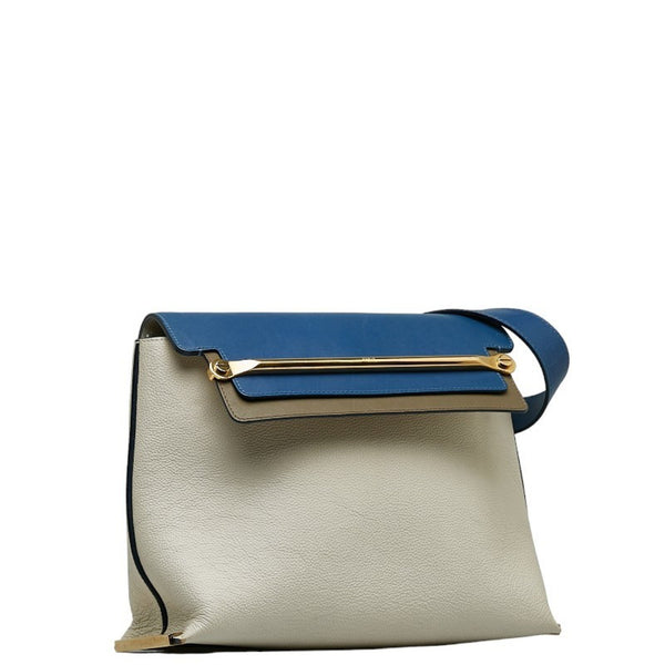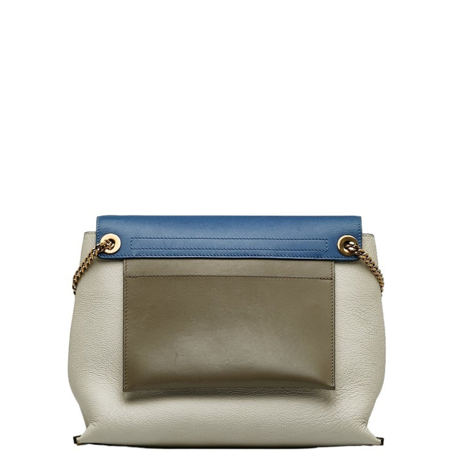 Chloé Chloe KU Bicolor Chain Shoulder Bag Ivory Navy Leather Women\'s