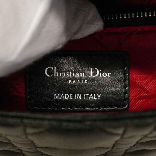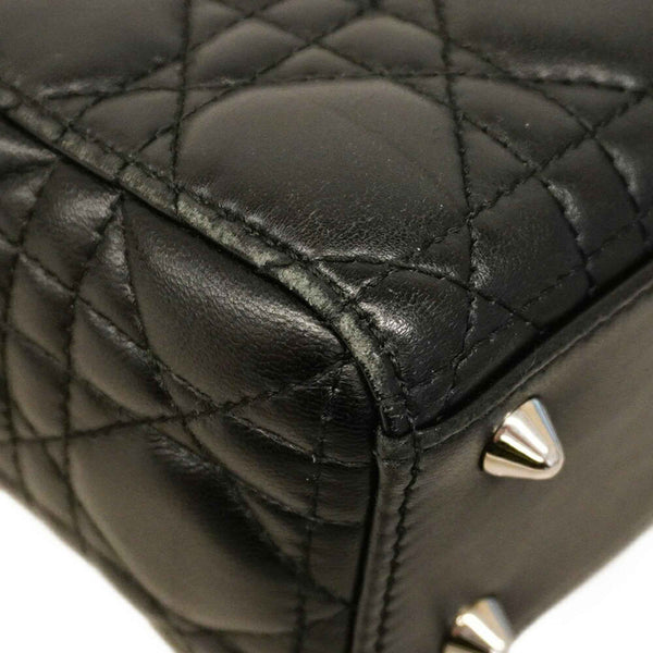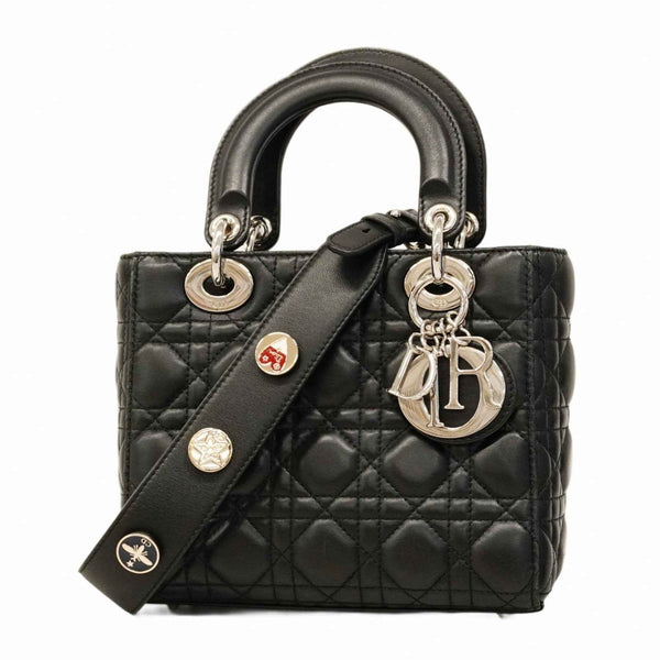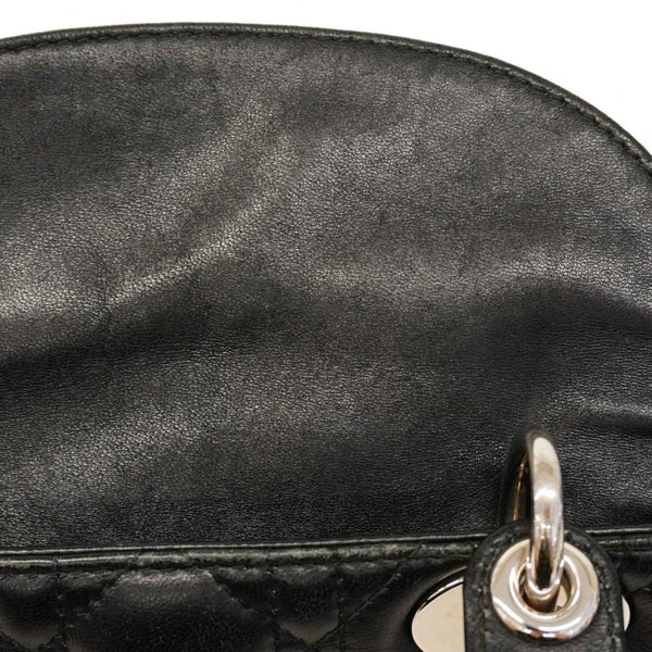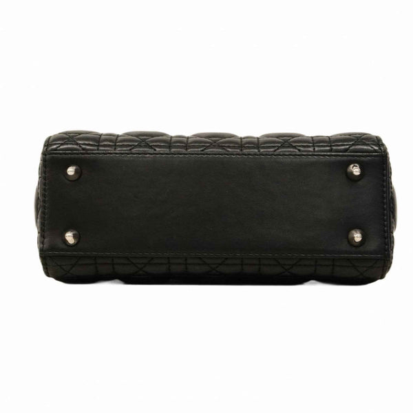 Christian Dior Cannage Lady Handbag, Black Leather, 2-Way Bag for Women
