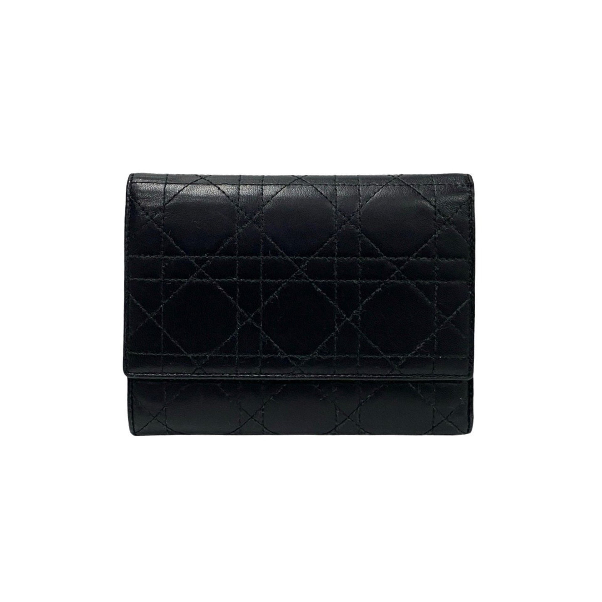 Christian Dior Cannage Leather Tri-fold Wallet with Bill Compartment and Coin Purse, Black, 73237