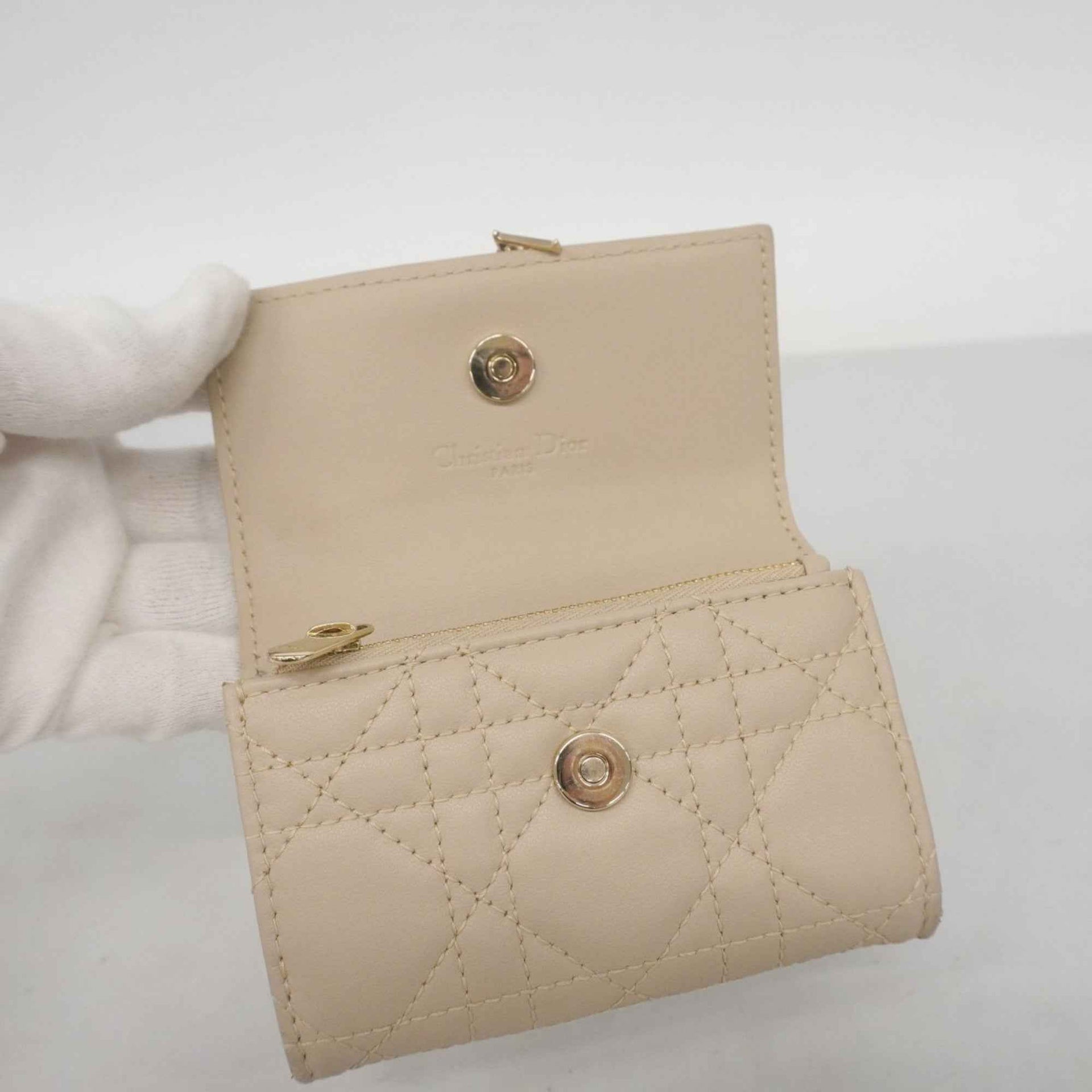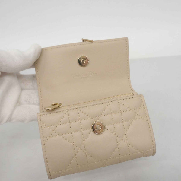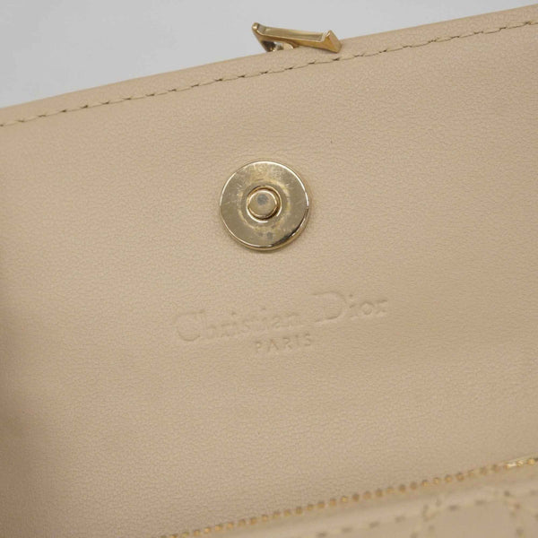 Christian Dior Cannage Leather Wallet, Beige, Champagne, Women\'s