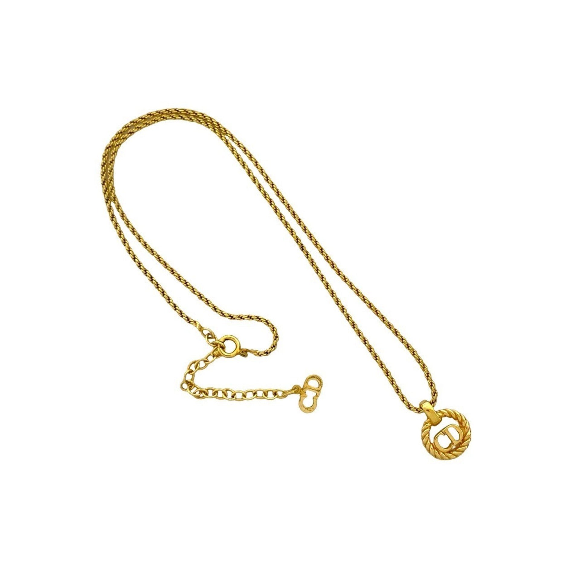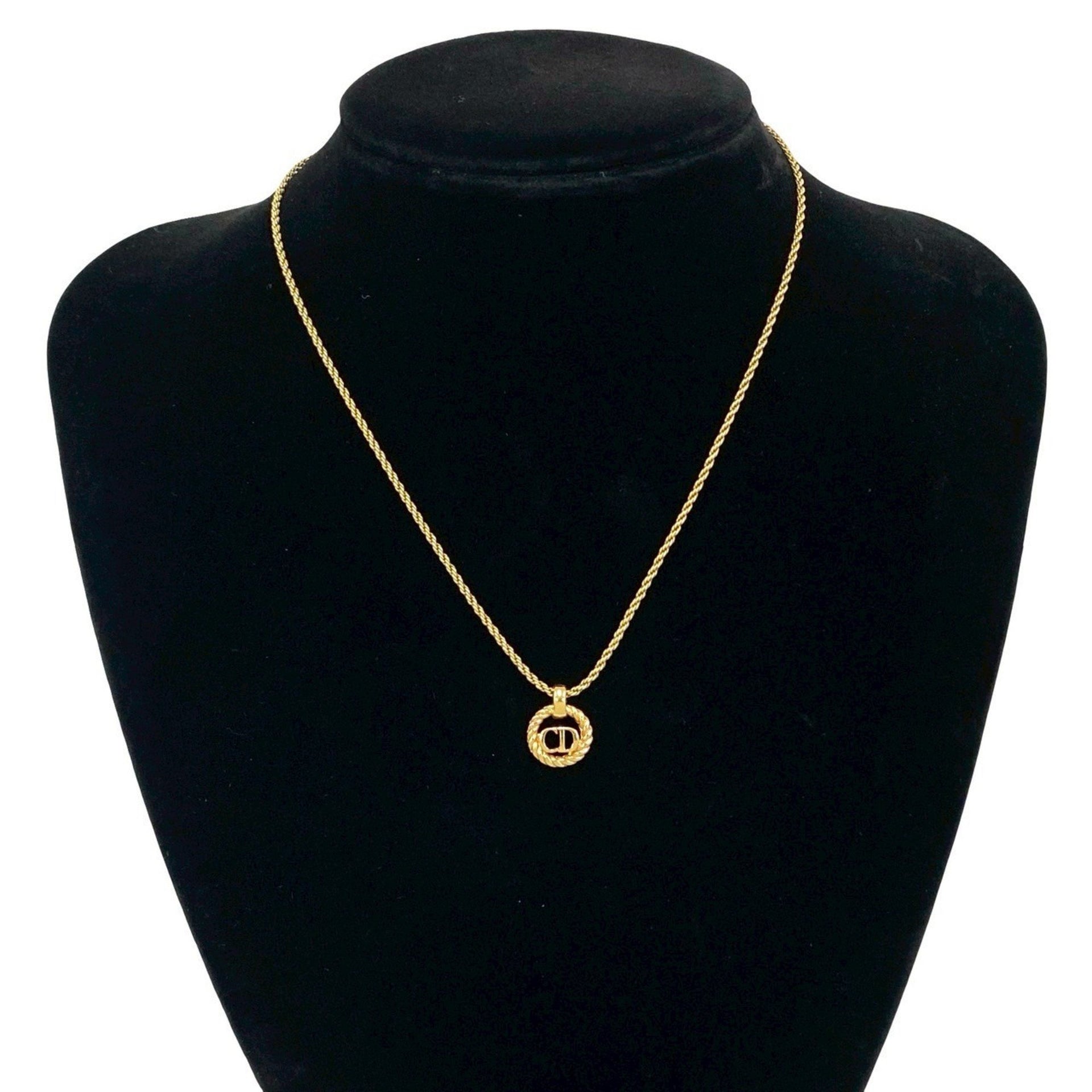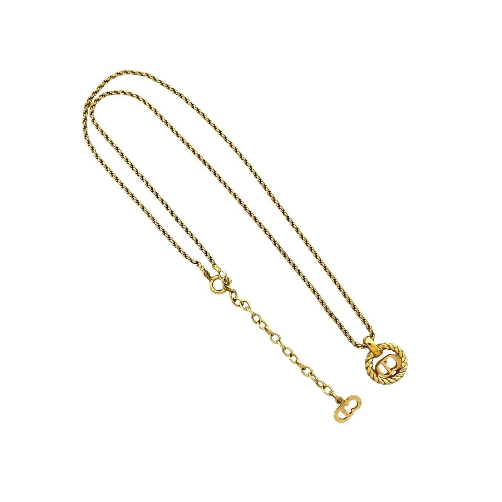 Christian Dior CD logo motif GP necklace pendant choker gold 17838