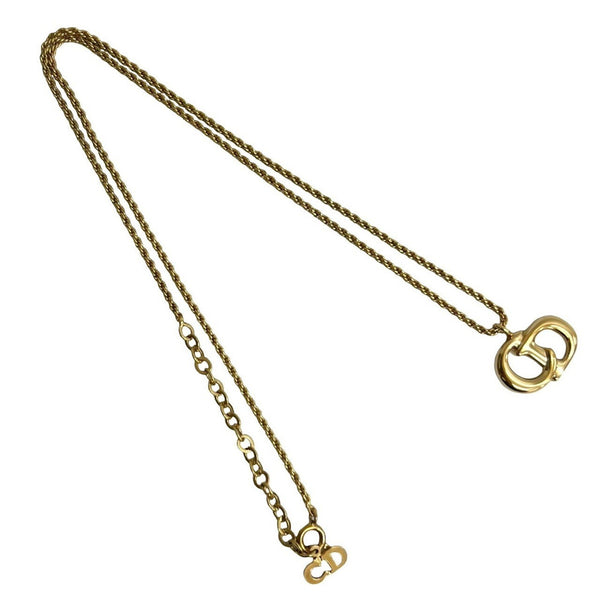 Christian Dior CD logo motif metal chain necklace pendant gold 638-7