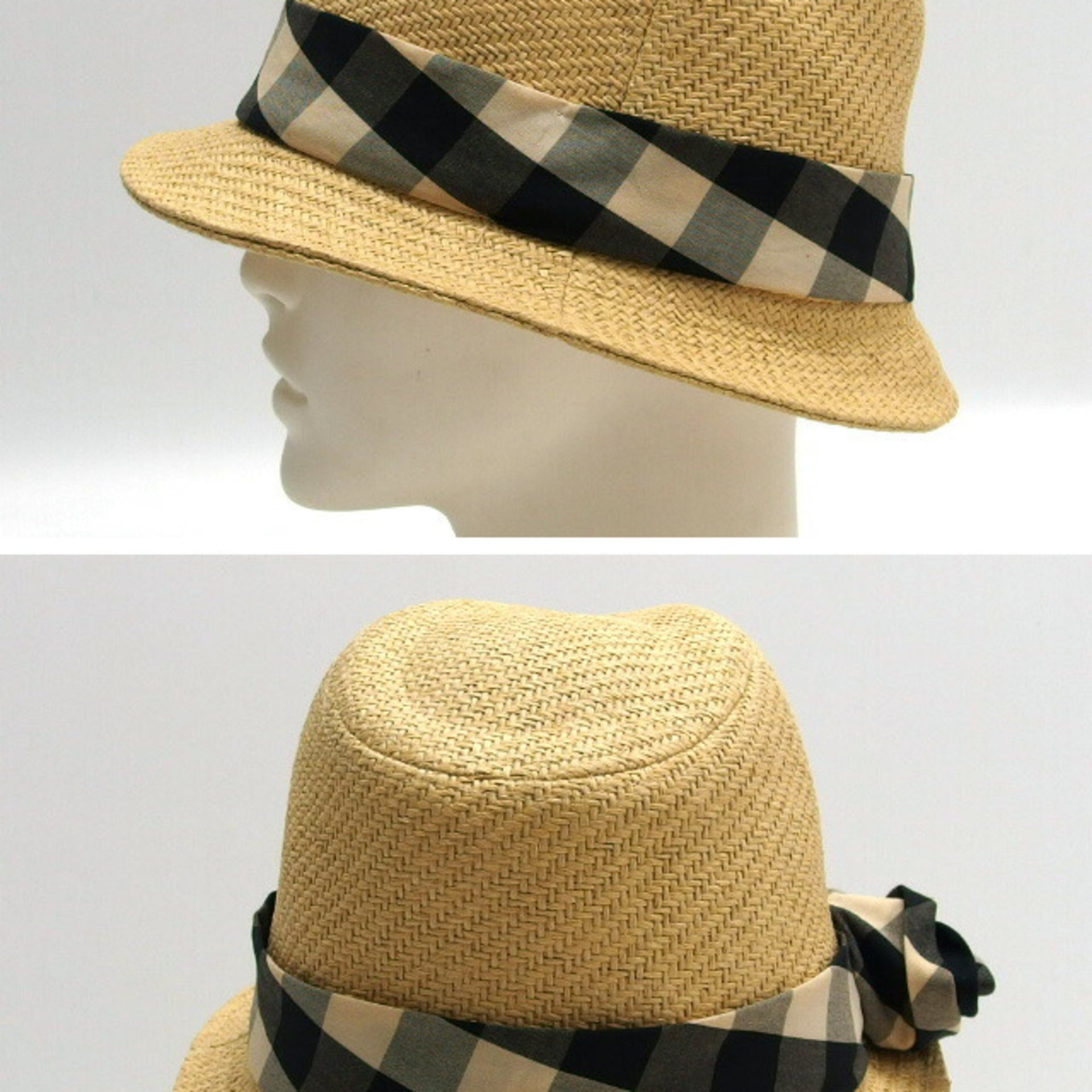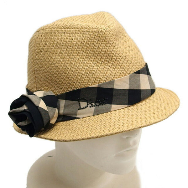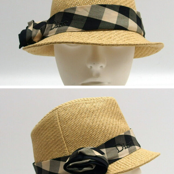 Christian Dior Check Ribbon Panama Hat, Size T4