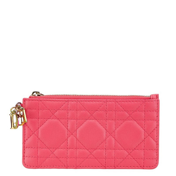 Christian Dior Dior Cannage Card Case, Pink Leather, Women\'s,