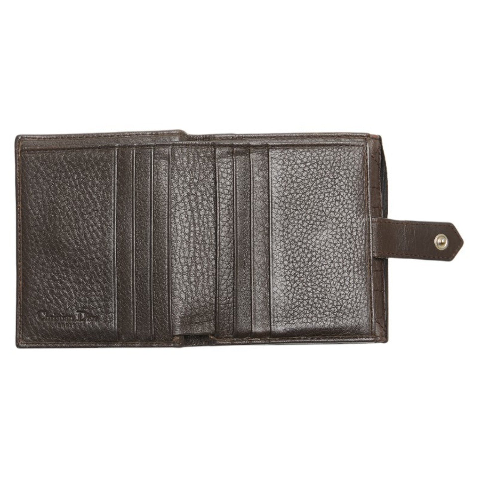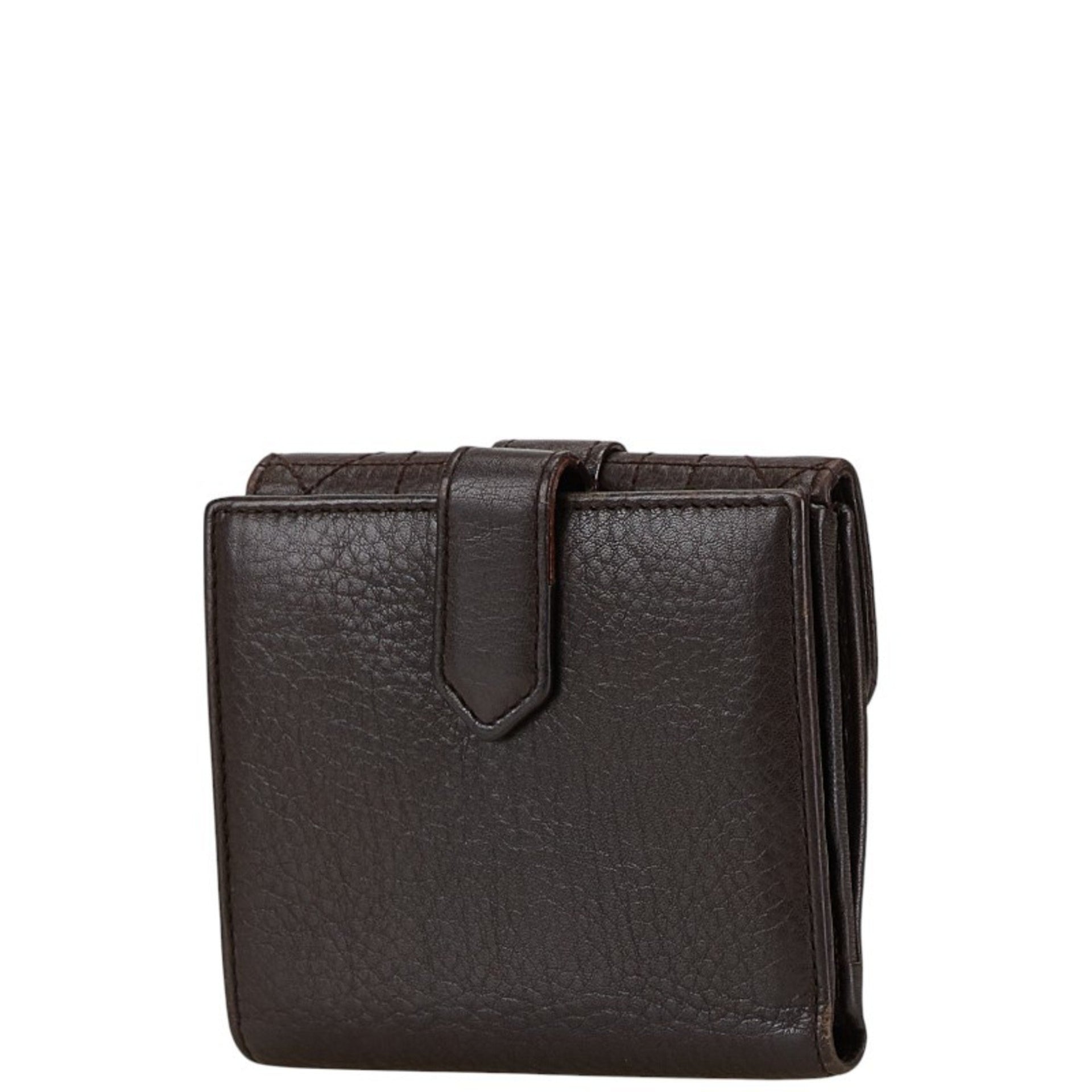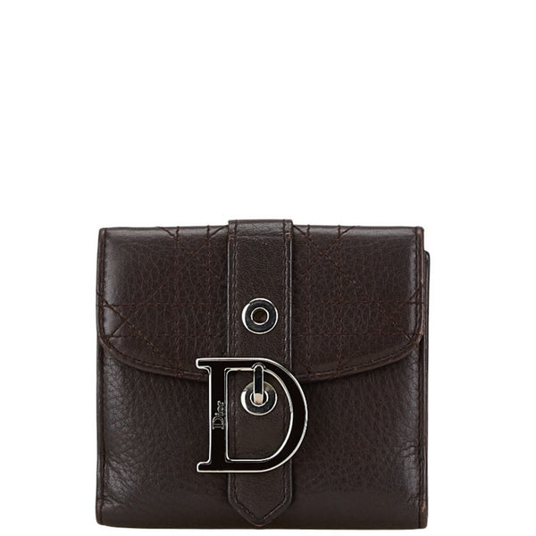 Christian Dior Dior Cannage Stitch W Bi-fold Wallet Brown Leather Women\'s