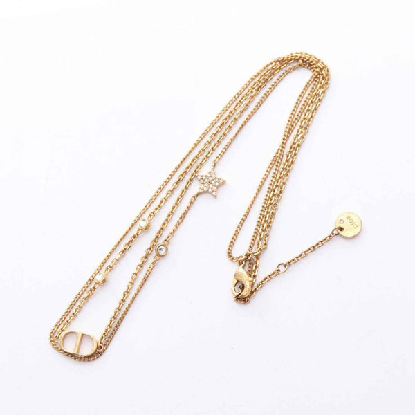 Christian Dior Dior CD logo star necklace with gold-plated rhinestones for women, available in gold and clear.