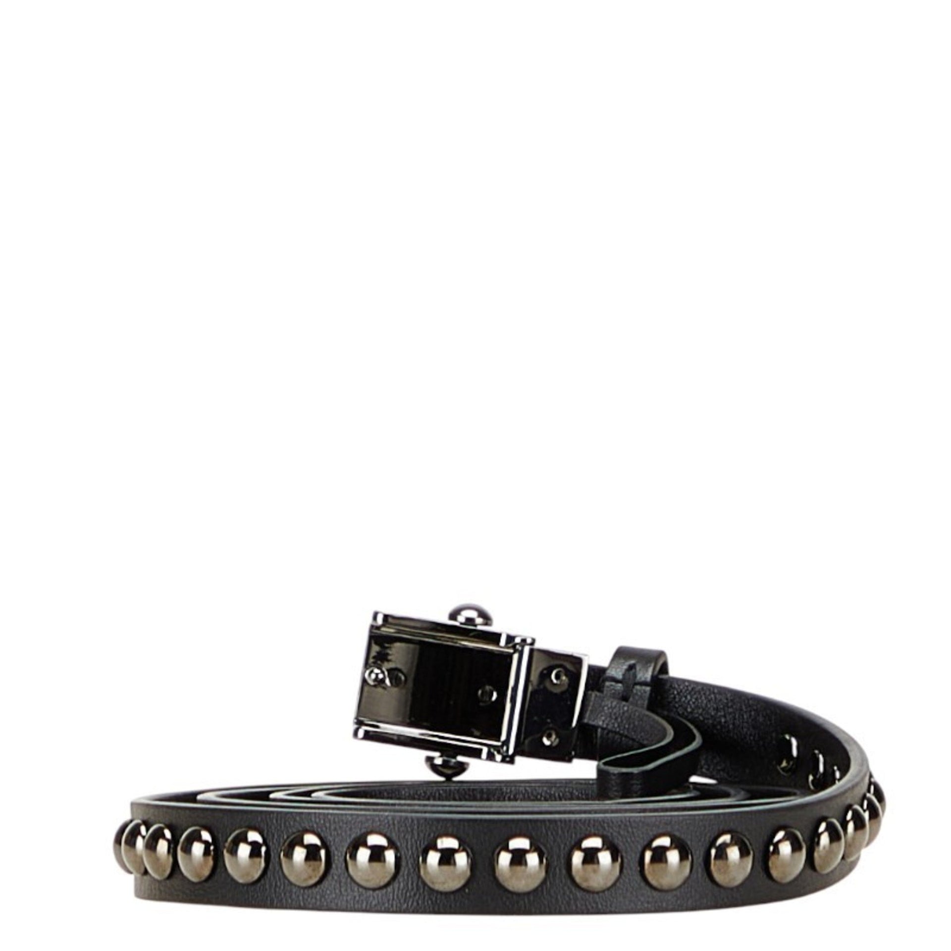 Christian Dior Dior CD logo studded belt in black leather for women.