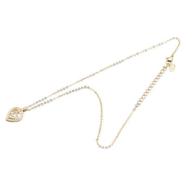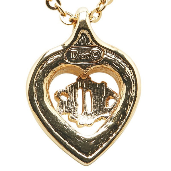 Christian Dior Dior Emblem Logo Heart Rhinestone Motif Necklace Gold Plated Women\'s