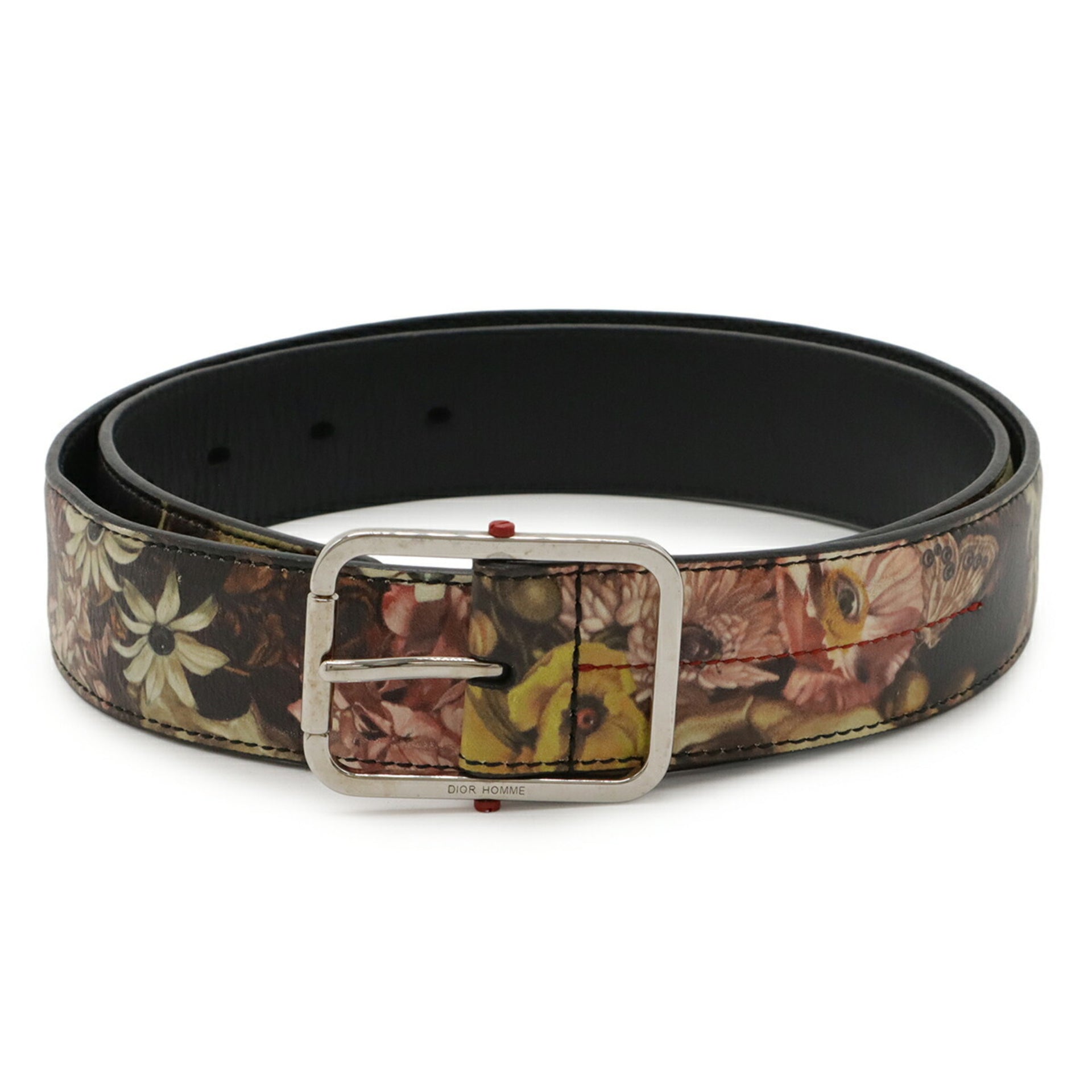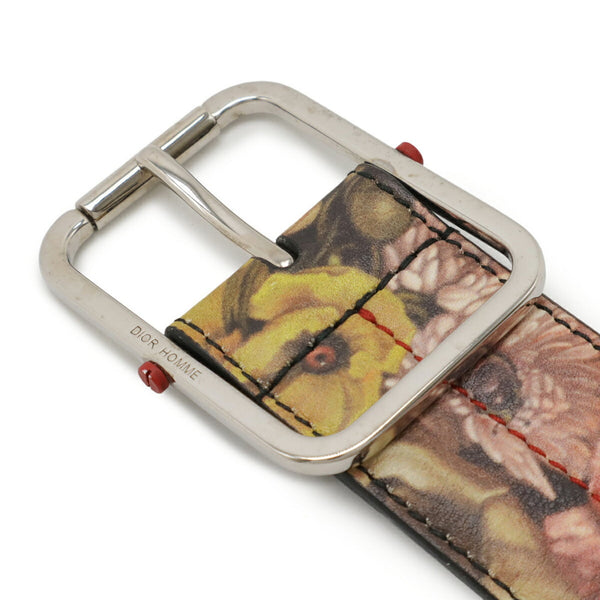 Christian Dior DIOR HOMME Homme Belt with Flowers in Black Leather, Multicolor #90