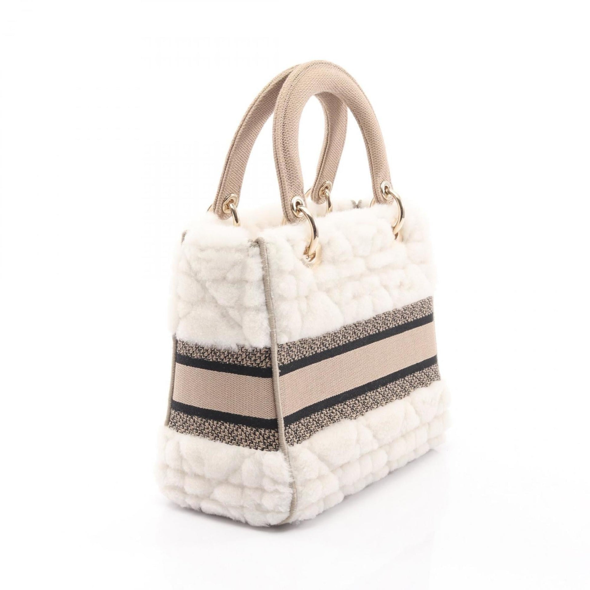 Christian Dior Dior LADY D-LITE Medium Handbag, Canvas and Shearling, Women\'s, White, Beige, Black