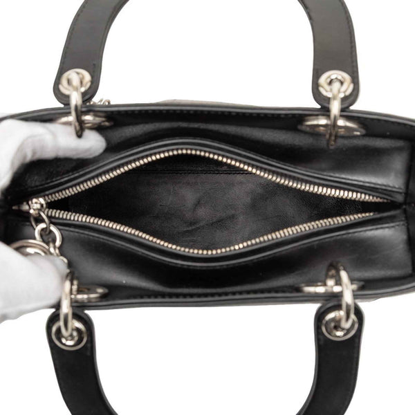 Christian Dior Dior Lady Medium Satchel Bag, Handbag/Shoulder 2-Way, Black/Multicolor Calfskin, Women\'s,