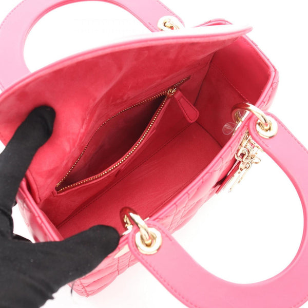 Christian Dior Dior Lady Small Cannage Handbag Leather Women\'s Pink