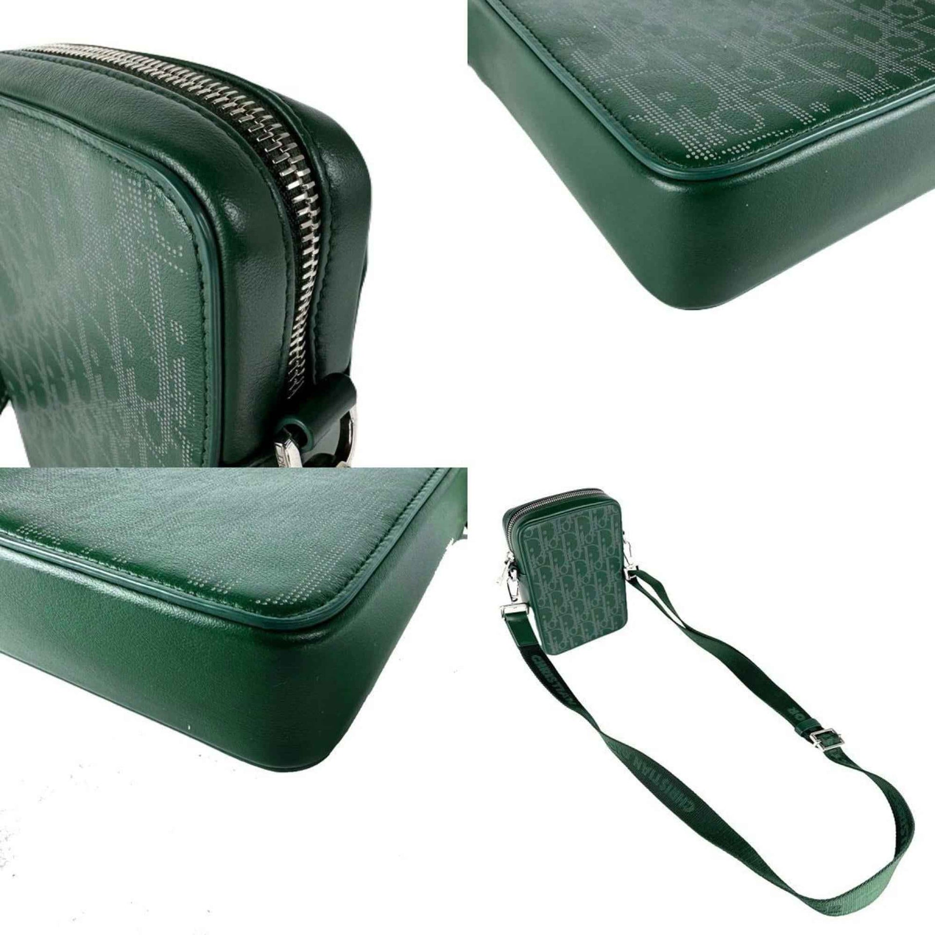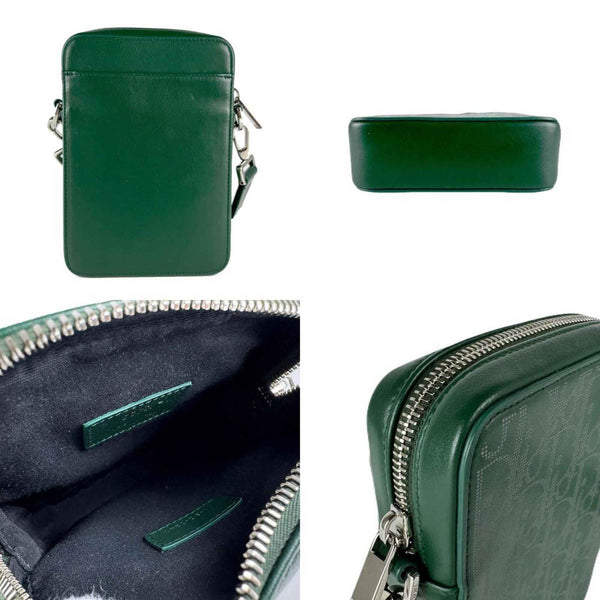 Christian Dior Dior Men\'s Shoulder Bag, Leather/Canvas, Green and Silver, Z8396