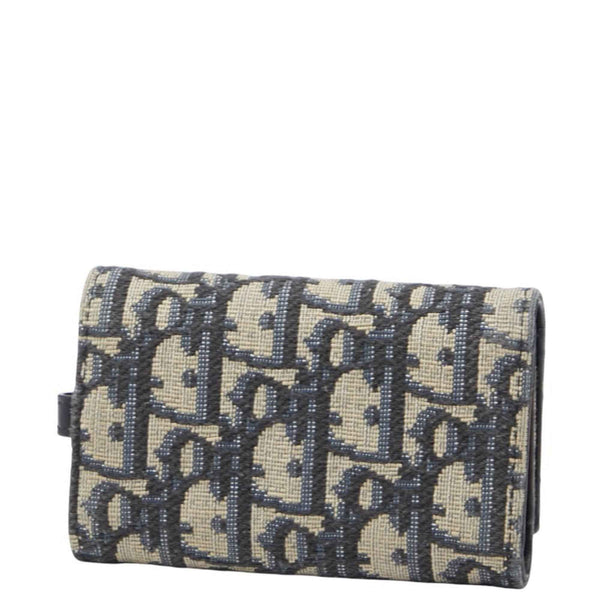 Christian Dior Dior Oblique 4-ring key case in beige and navy canvas leather. Women\'s.