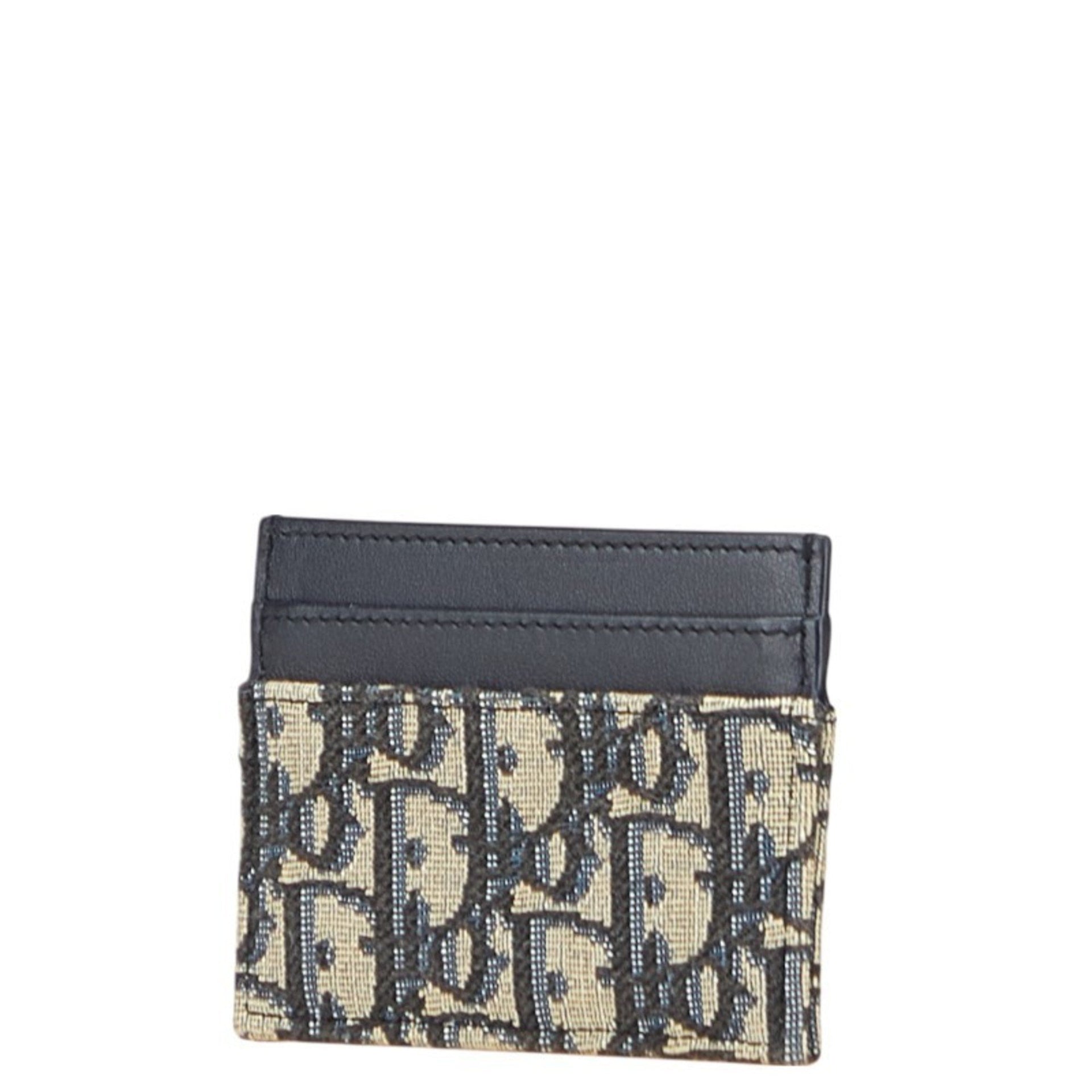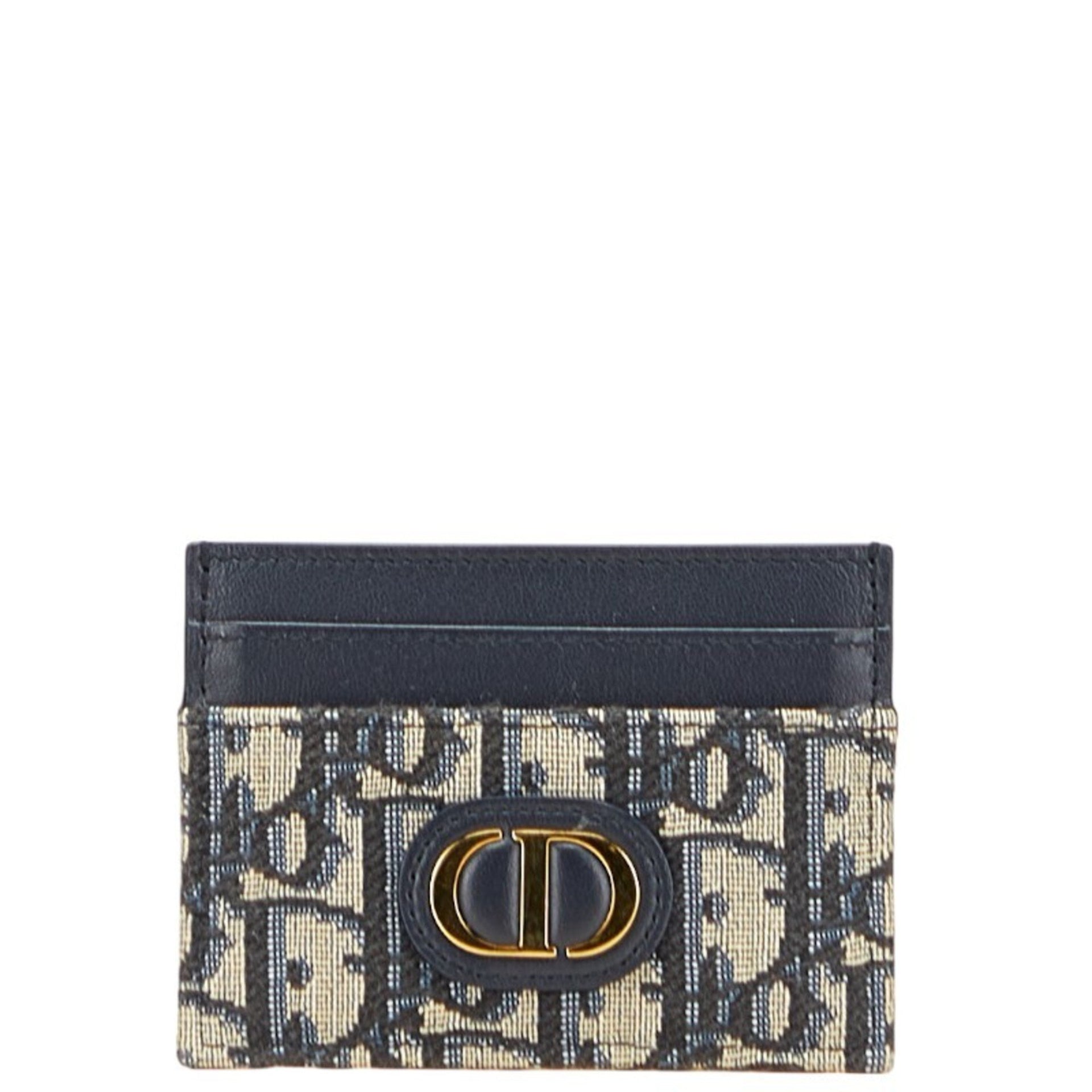 Christian Dior Dior Oblique Jacquard 30 Montaigne Freesia Card Holder/Card Case in Navy/Beige Cotton Canvas and Lambskin. Women\'s.