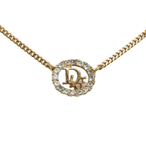 Christian Dior Dior Rhinestone Necklace Gold Plated Women\'s