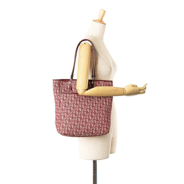 Christian Dior Dior Trotter Tote Bag Shoulder Bordeaux Wine Red Canvas Leather Women\'s