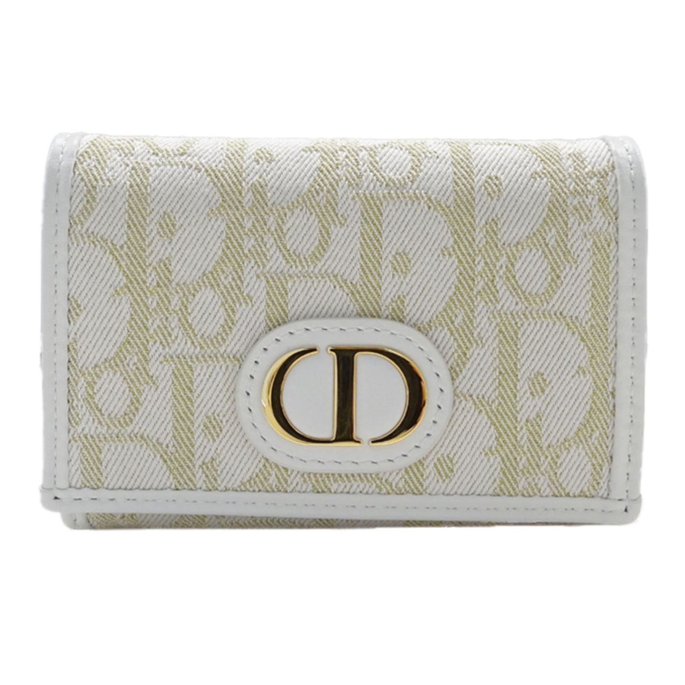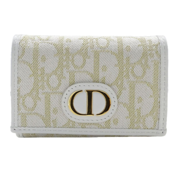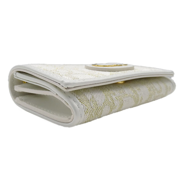 Christian Dior Dior Women\'s Wallet, Oblique Coin Case, Jacquard, White and Gold Trotter Canvas, Hardware, Card Compact