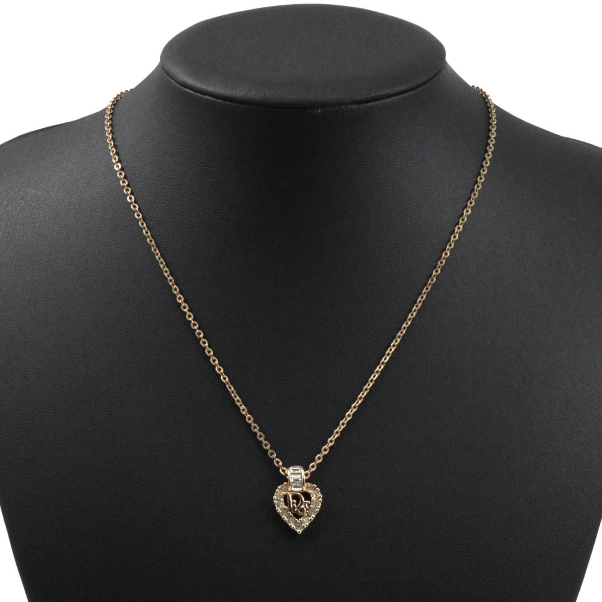 Christian Dior Heart Necklace, Gold-Plated with Rhinestones, Approximately 6.1g, Logo Heart, Women\'s, M152125006