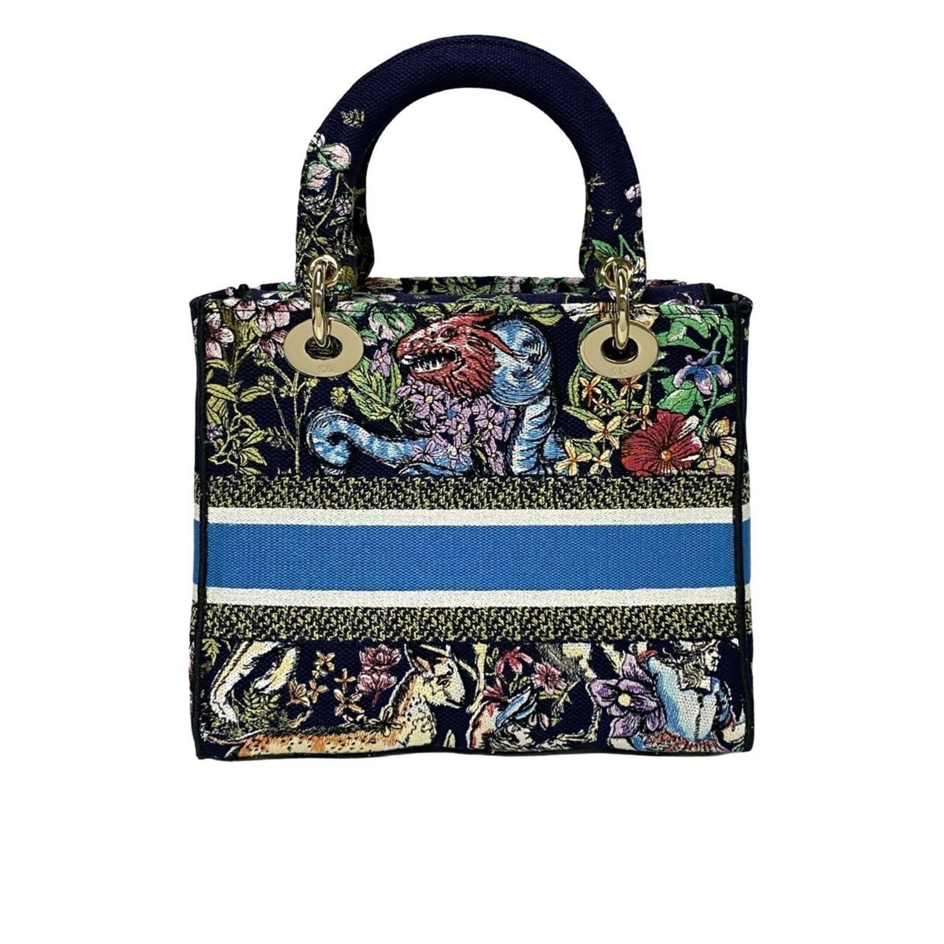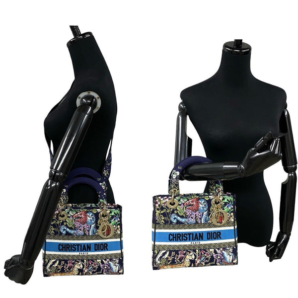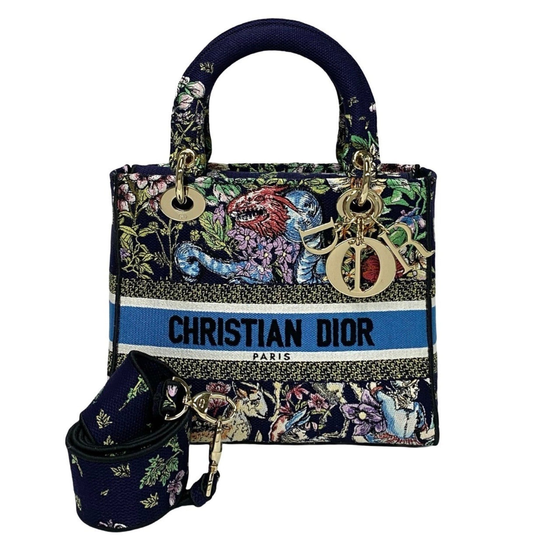 Christian Dior Lady Cannage Canvas 2-Way Shoulder Bag, Blue, 40722