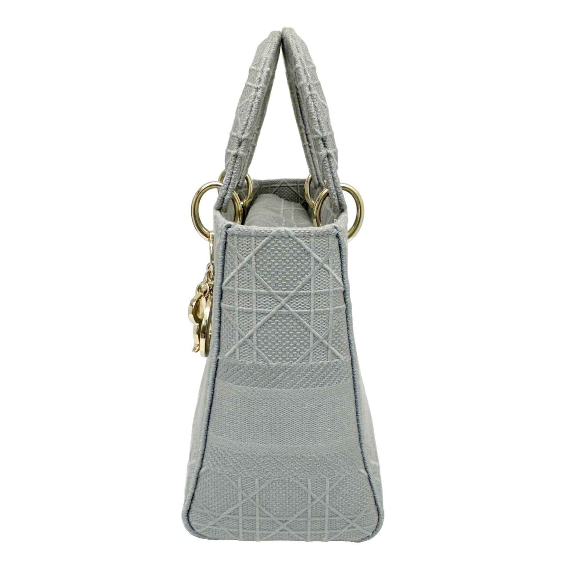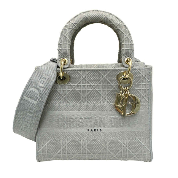 Christian Dior LADY D-LITE Medium Bag Cannage Embroidery Gray M0565OREY_M950 Embroidered Shoulder Handbag Women\'s