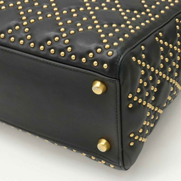Christian Dior Lady M Medium Studs Handbag Shoulder Bag Leather Black