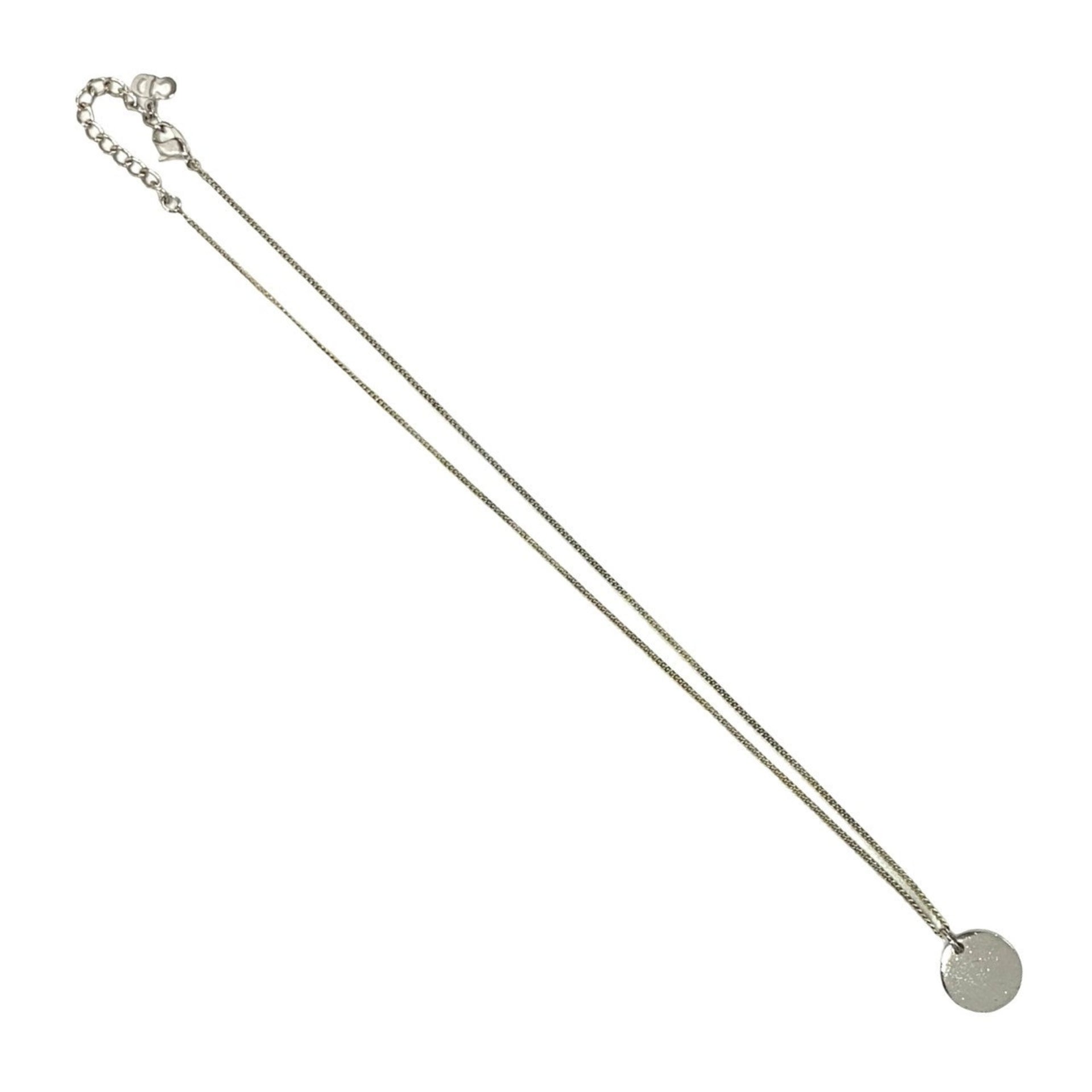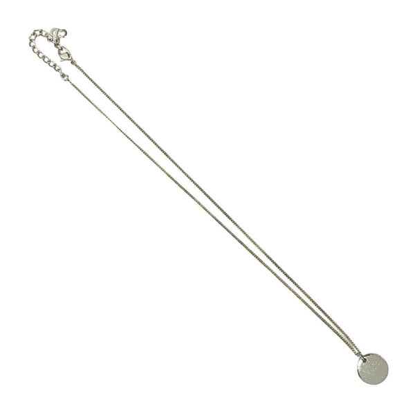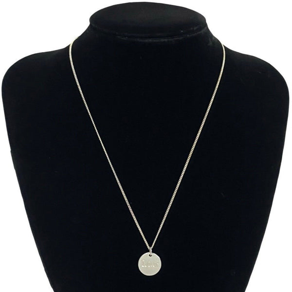 Christian Dior logo engraved motif circle silver plated necklace pendant 290-2
