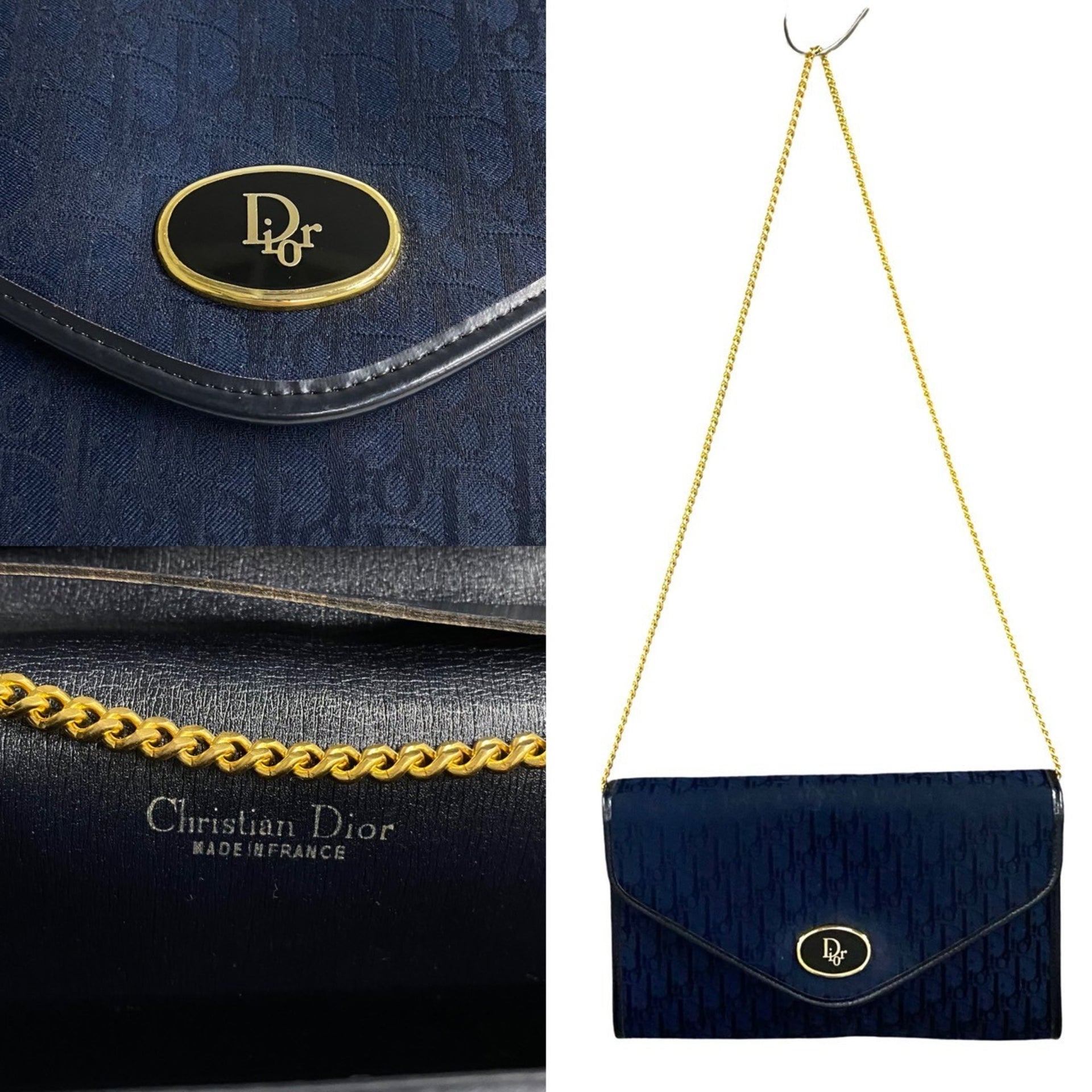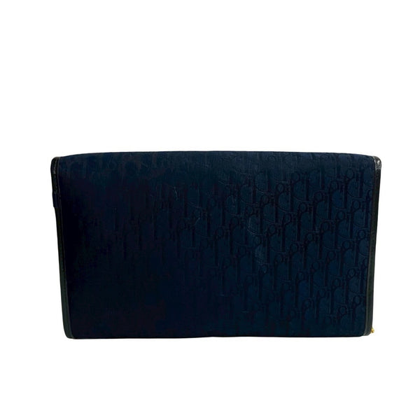 Christian Dior Logo Trotter Pattern Leather Nylon Canvas Shoulder Bag Navy 97056