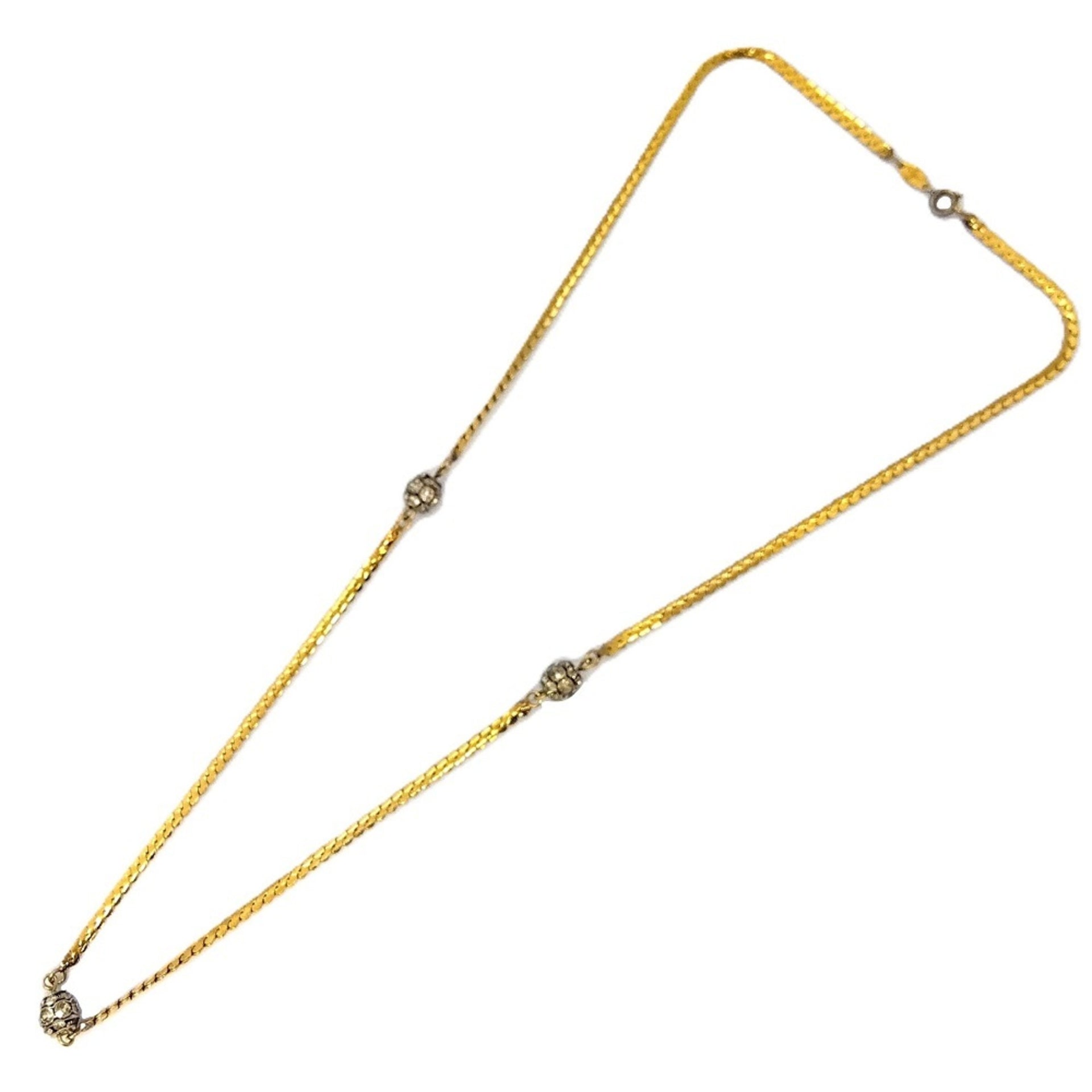 Christian Dior Necklace Gold Rhinestone 3P Ball Long 1975