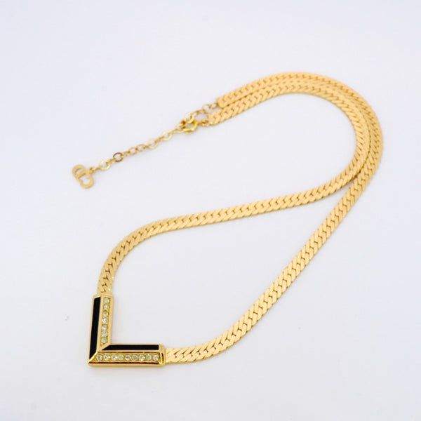 Christian Dior Necklace, GP Plated, Rhinestone, Gold, Black, Women\'s