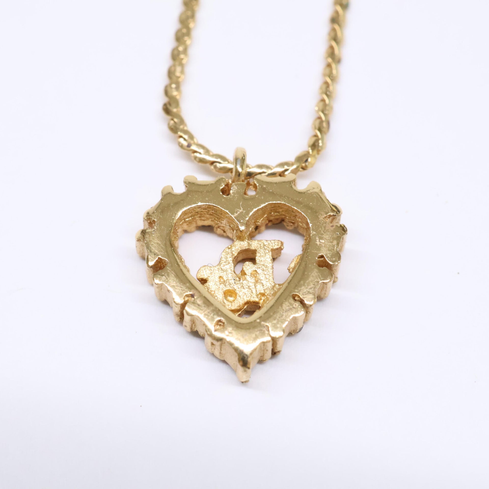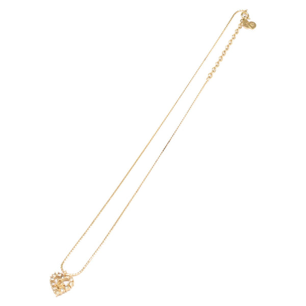 Christian Dior Rhinestone Logo Heart Top Necklace Gold Women\'s