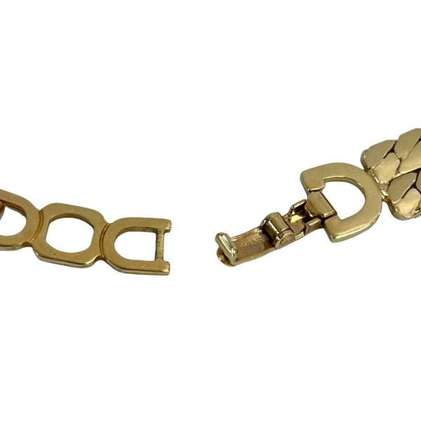 Christian Dior Ribbon Motif Rhinestone GP Choker Necklace Gold 1190h