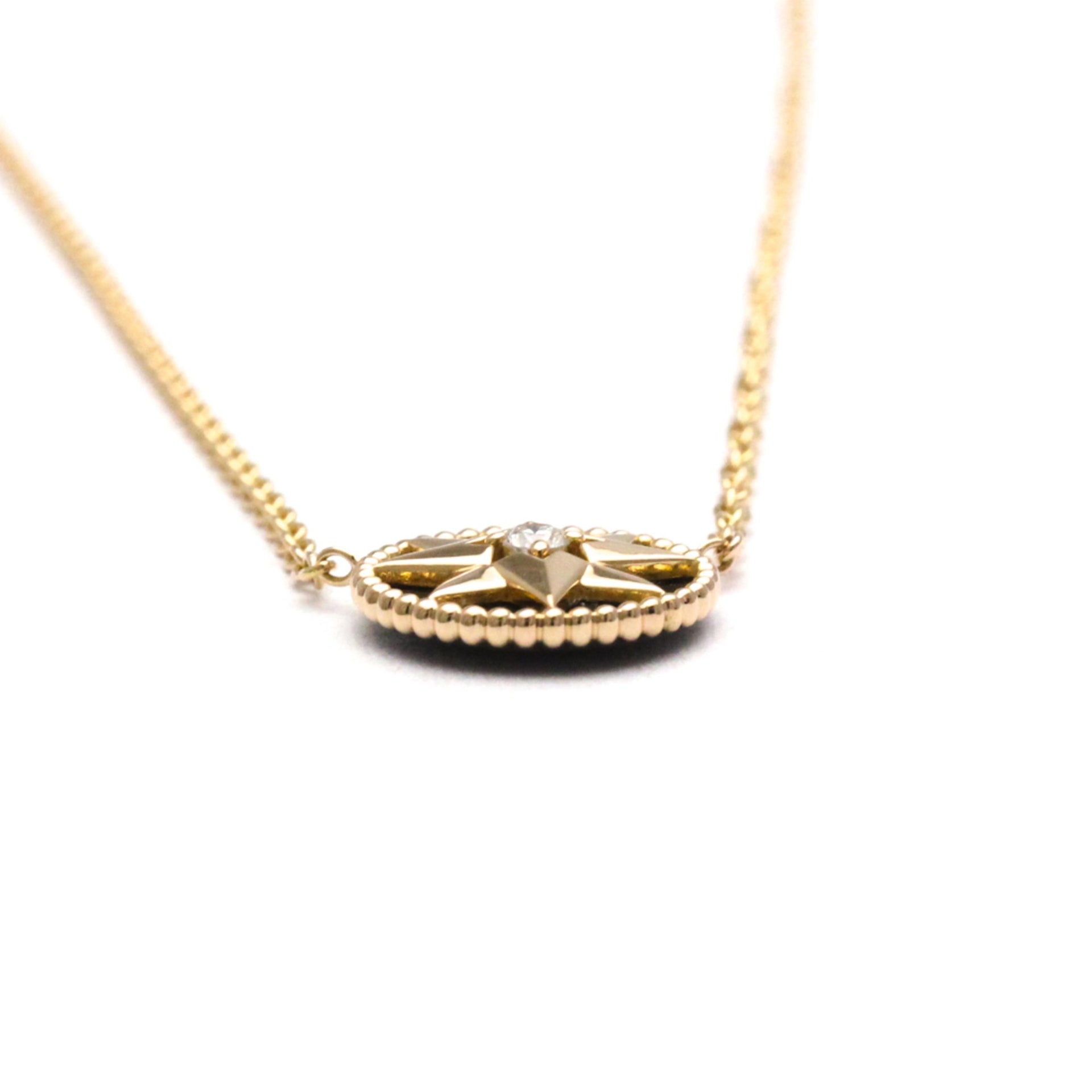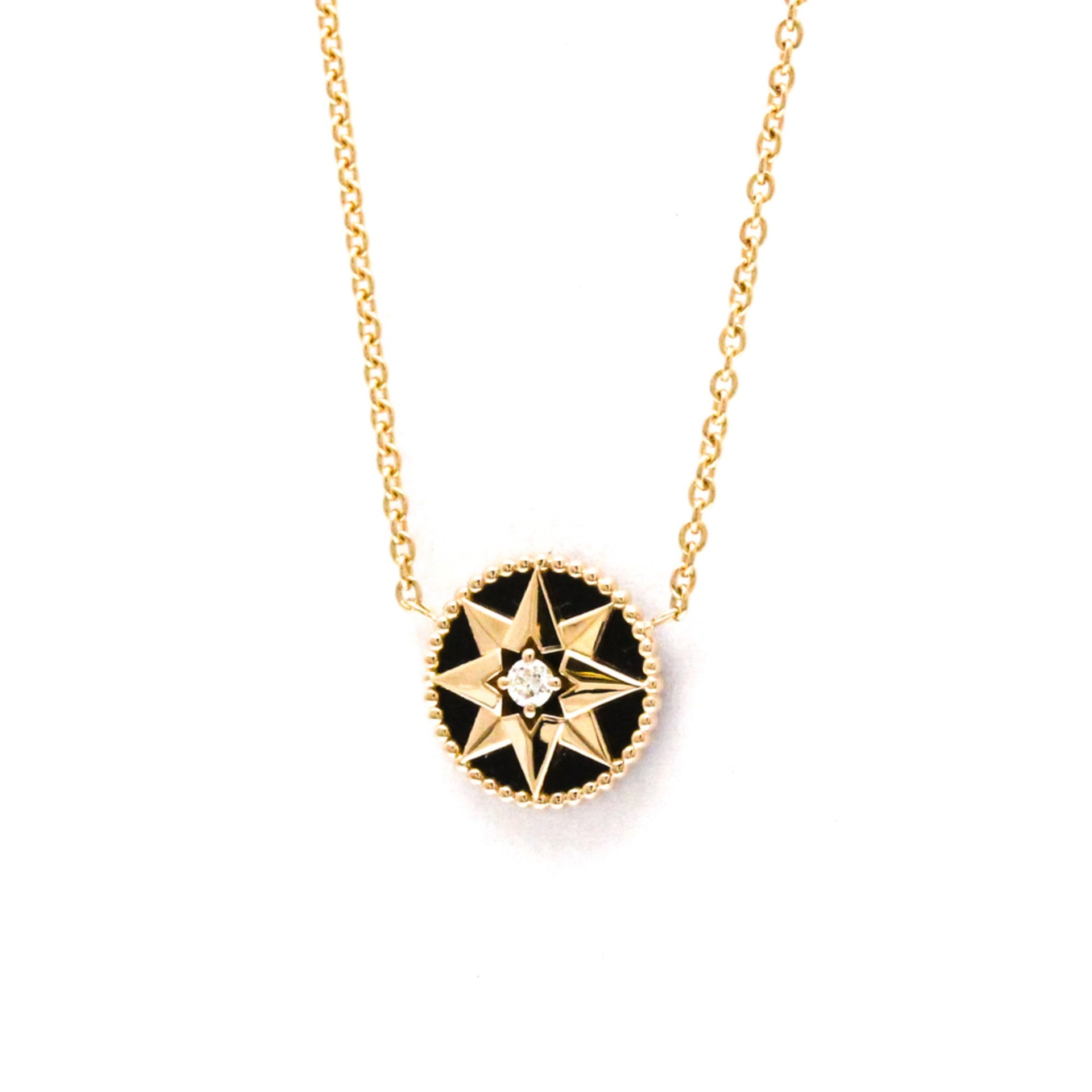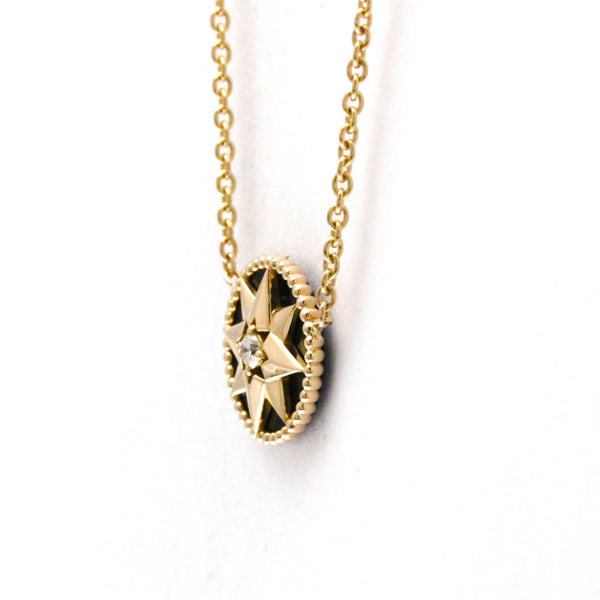Christian Dior Rose Des Vents Onyx Necklace Pink Gold (18K) Diamond,Onyx Men,Women Fashion Pendant Necklace (Pink Gold)