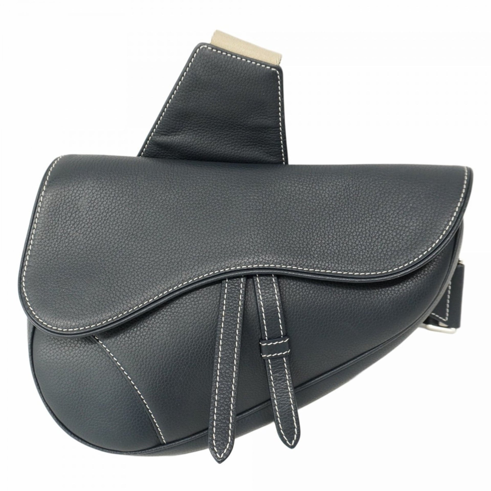 Christian Dior Shoulder Bag Saddle Leather Navy Women\'s