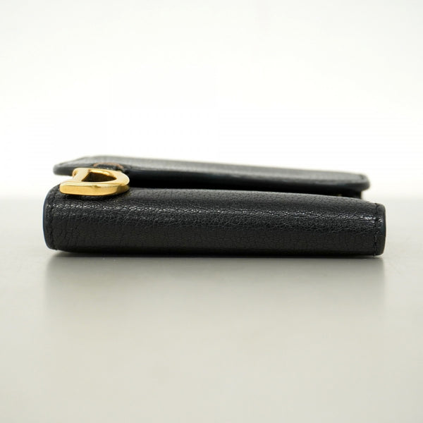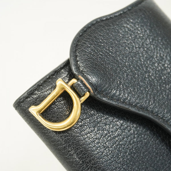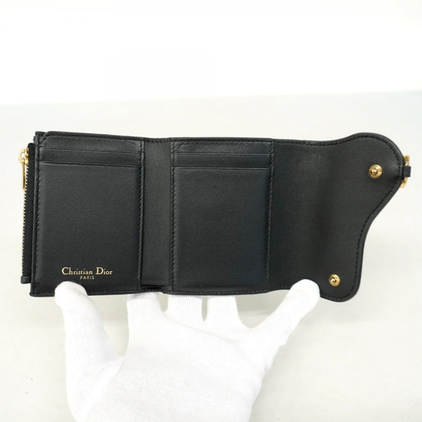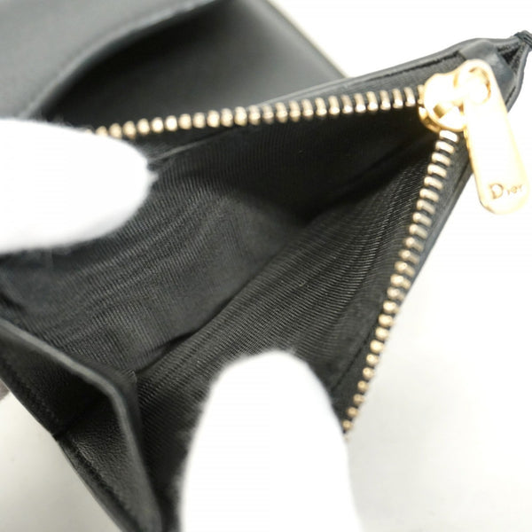 Christian Dior Tri-fold Wallet Leather Black Women\'s