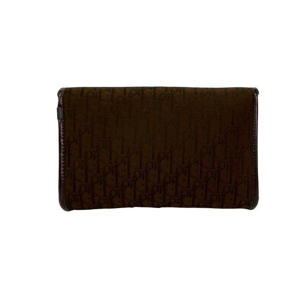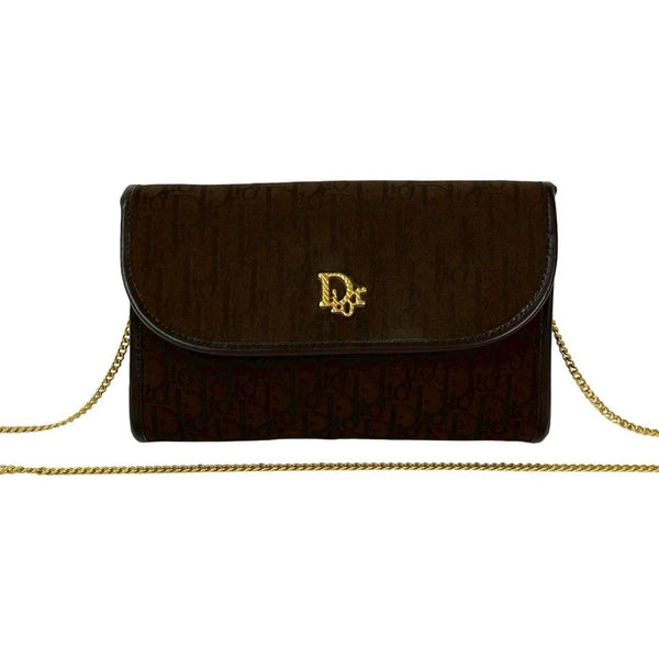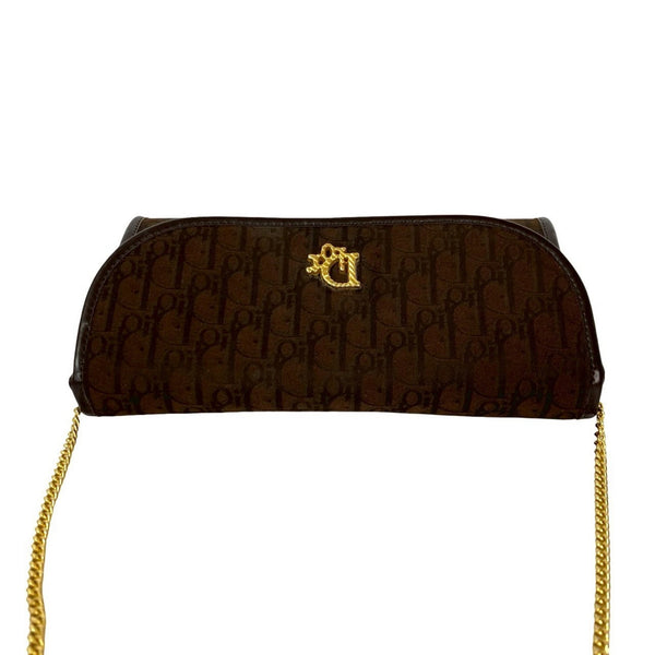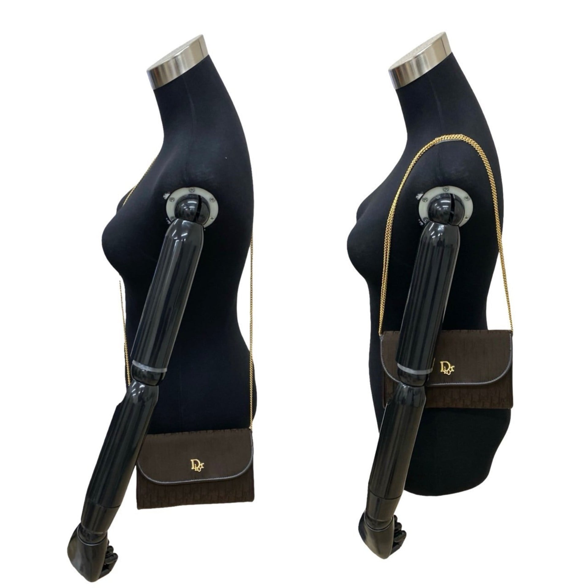Christian Dior Trotter Pattern Canvas Leather Chain Mini Semi Shoulder Bag Pochette Brown 90878
