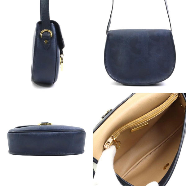 Christian Dior Women\'s Coated Canvas Leather Shoulder Bag in Navy (h31387g)