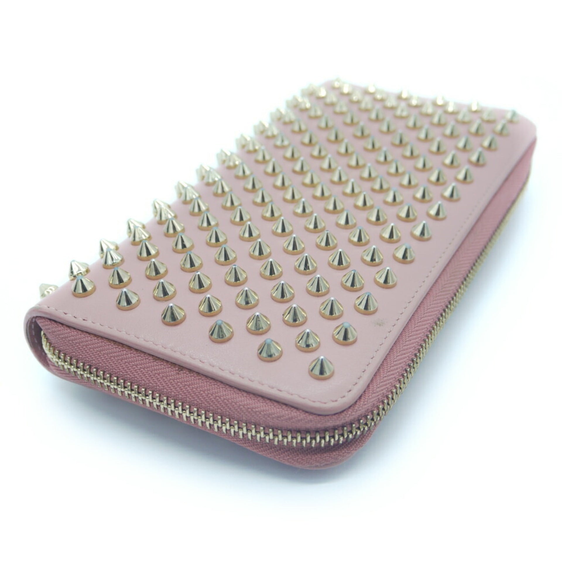 Christian Louboutin Panettone Spike Studs Round Zip Long Wallet Pink 1165065 Y03252