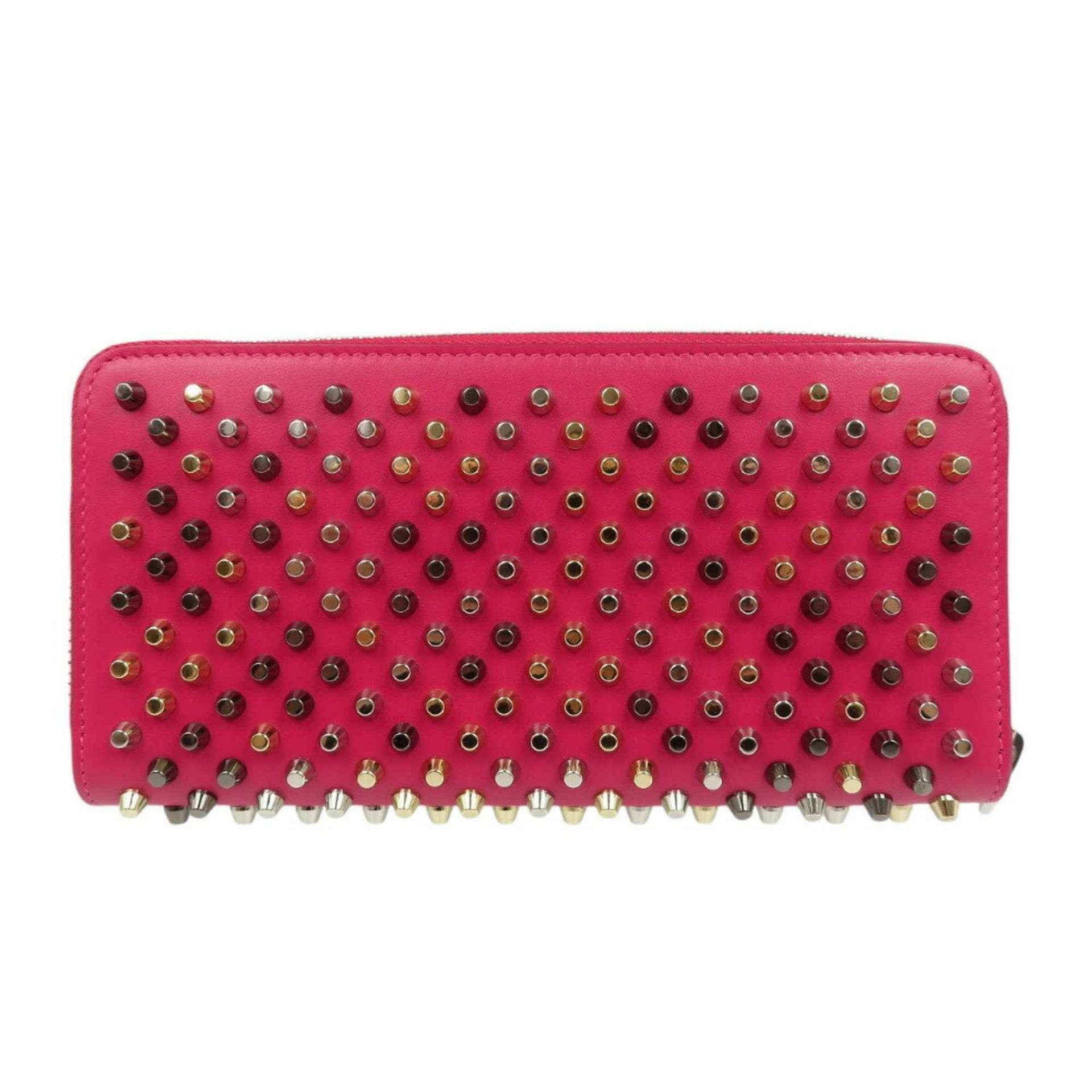 Christian Louboutin Panettone Studs 1175161 Leather Rosa Pink Red Round Long Wallet 0502Christian