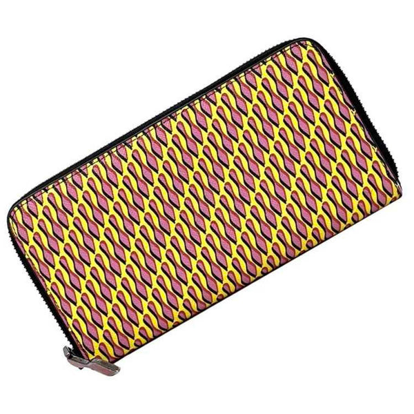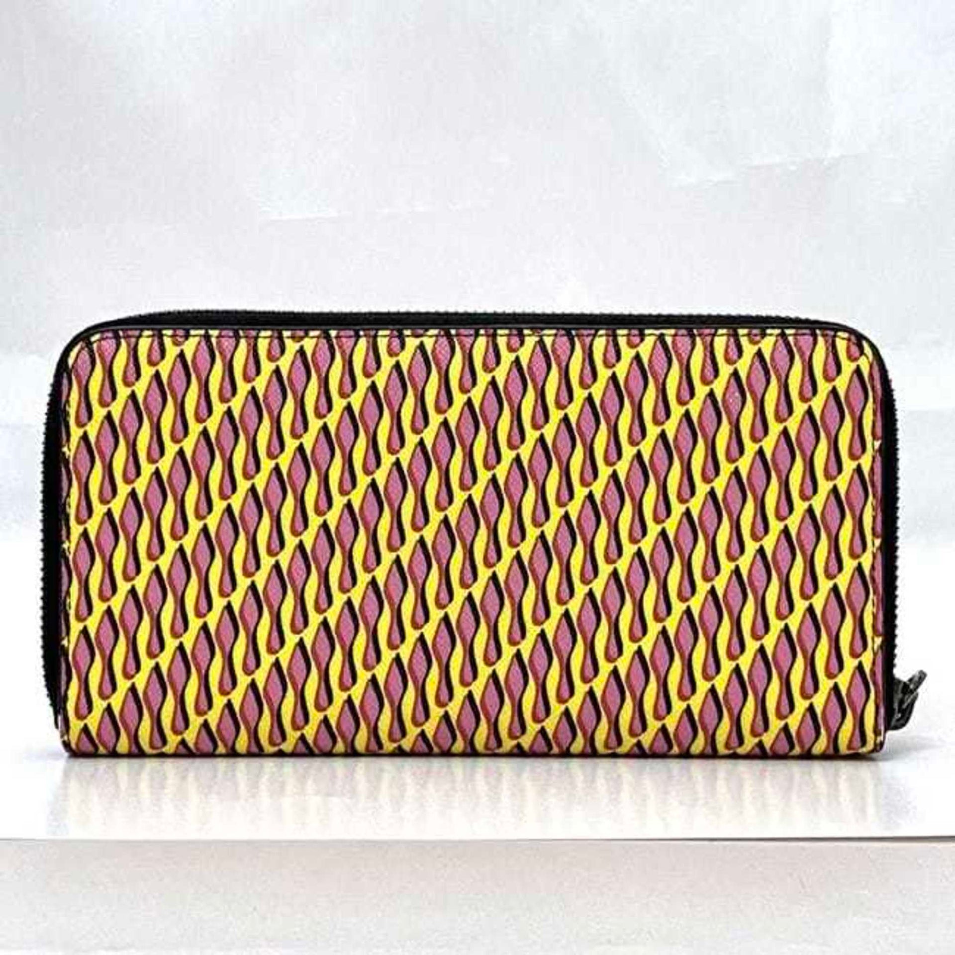 Christian Louboutin Round Long Wallet ec-21096 Yellow Pink Black PVC Leather Women\'s Pattern