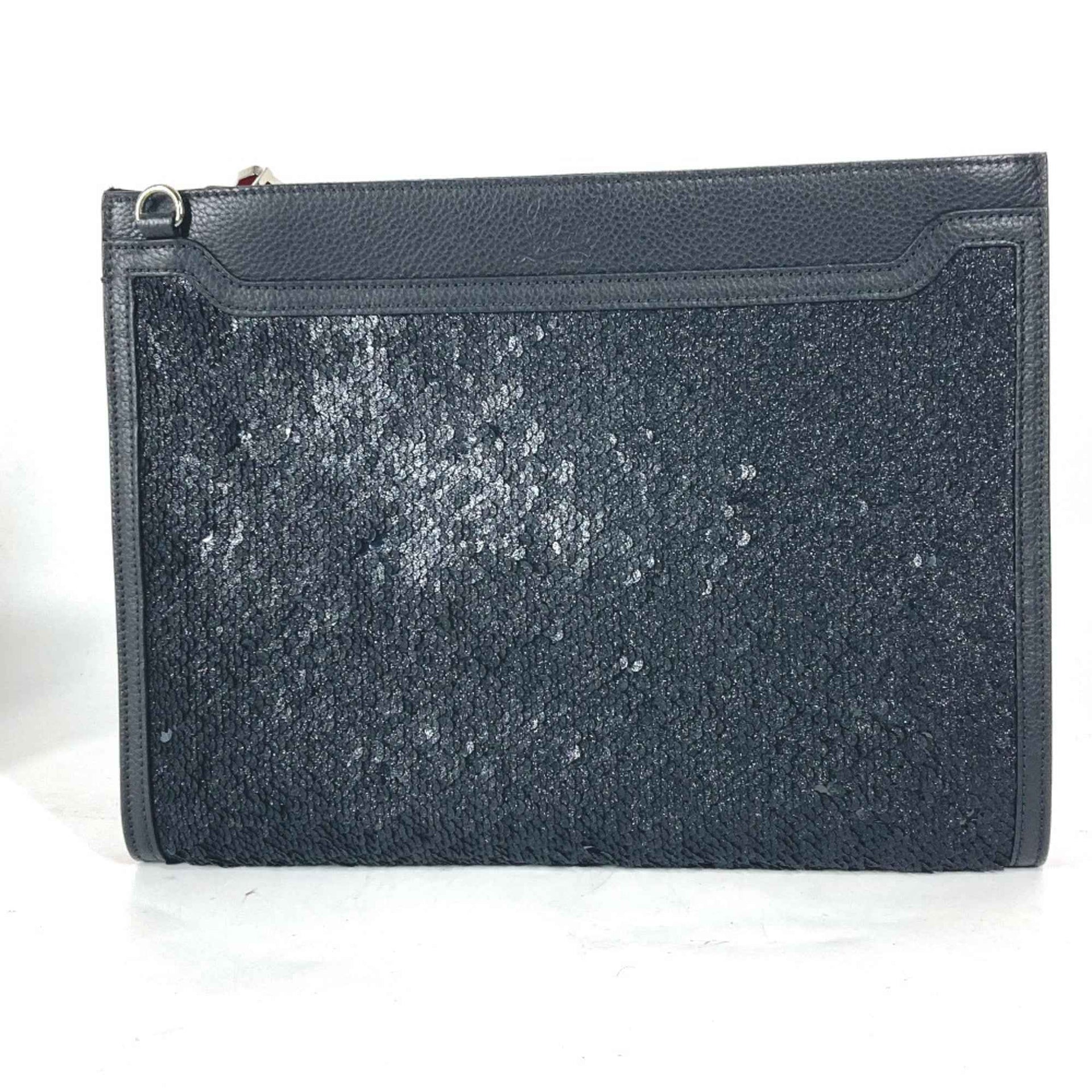 Christian Louboutin SKY Sequin Bag Clutch Shoulder Leather Men Women Black