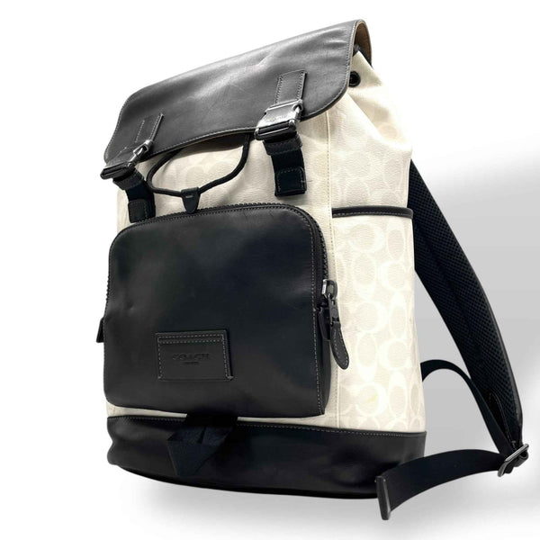 COACH Coach Truck Backpack, Colorblock Signature Leather, White/Black, Two-Tone Design with Silver Hardware, Men's/Women's, Size B