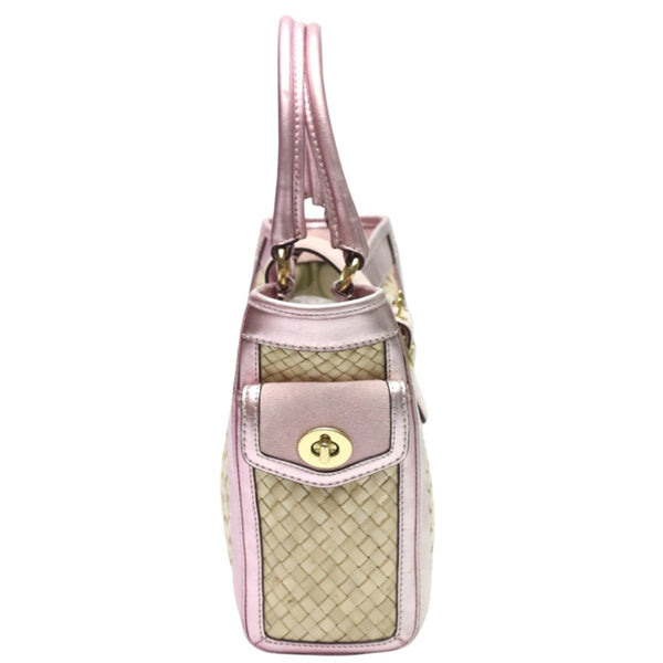 Coach handbag tote bag straw leather 4419 pink x beige