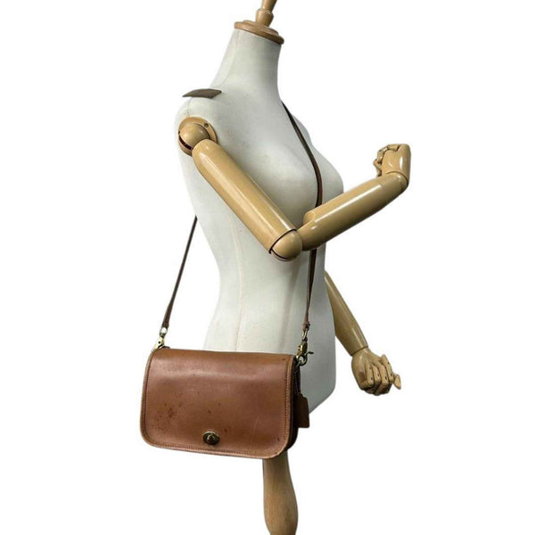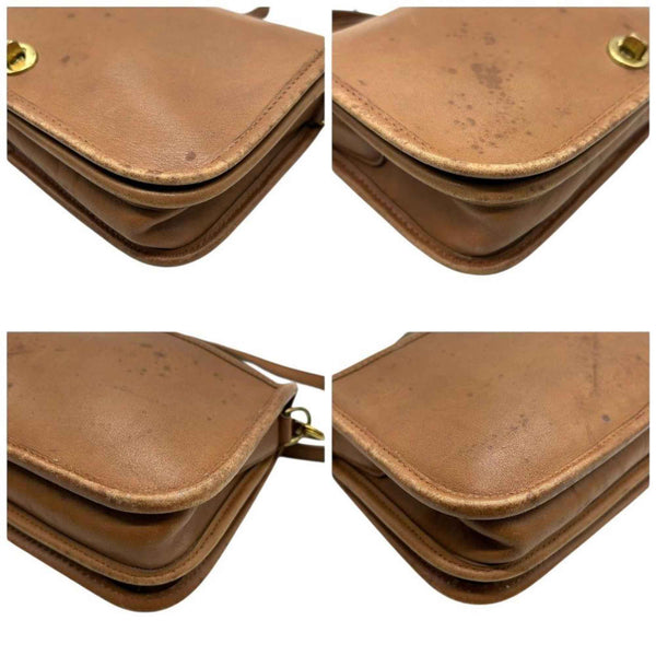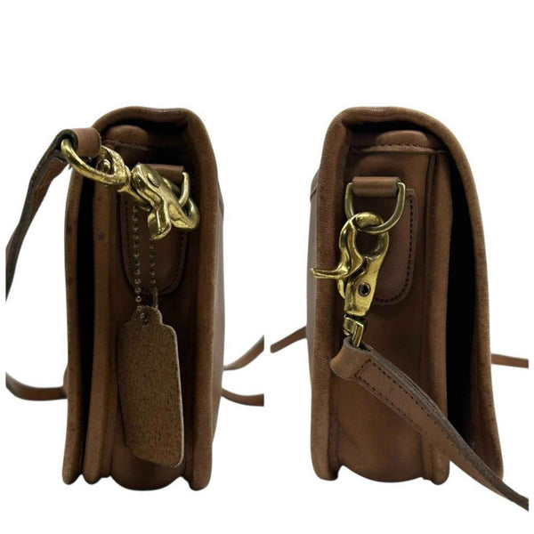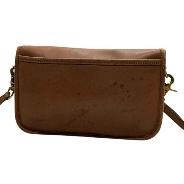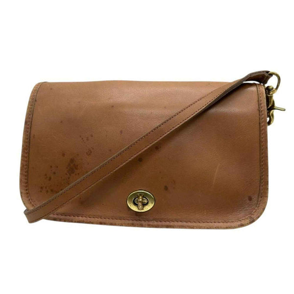 Coach Old Shoulder Bag Brown Flap Turnlock Leather Logo Tag Gold Hardware