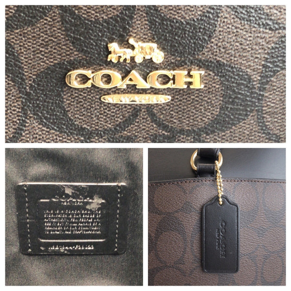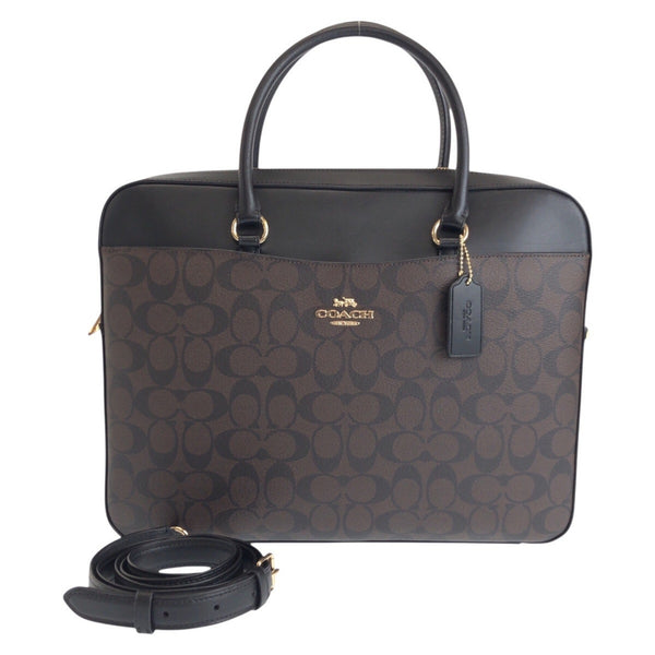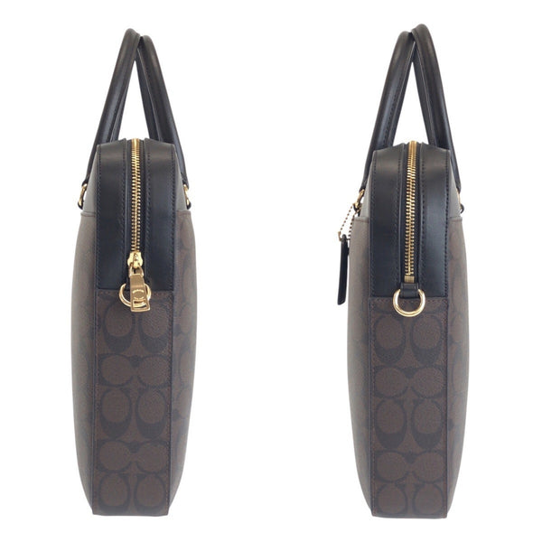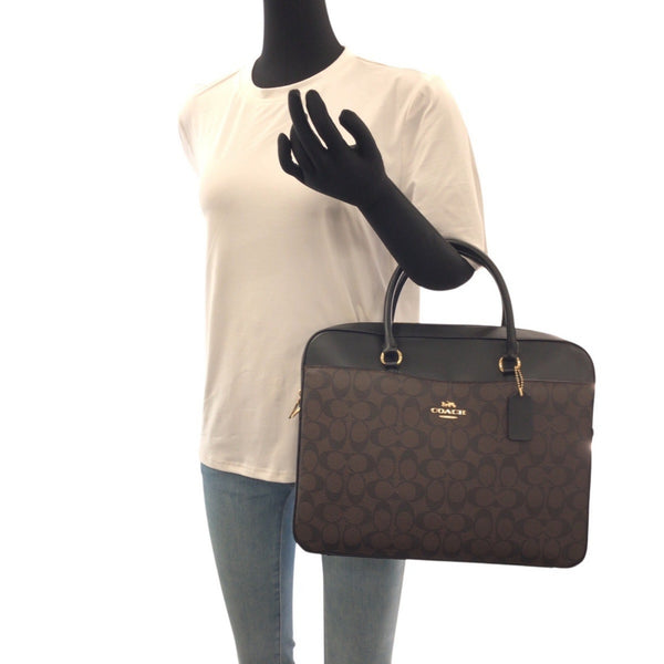 COACH Signature Brown, Black, and Gold Hardware Leather Business Briefcase for Women