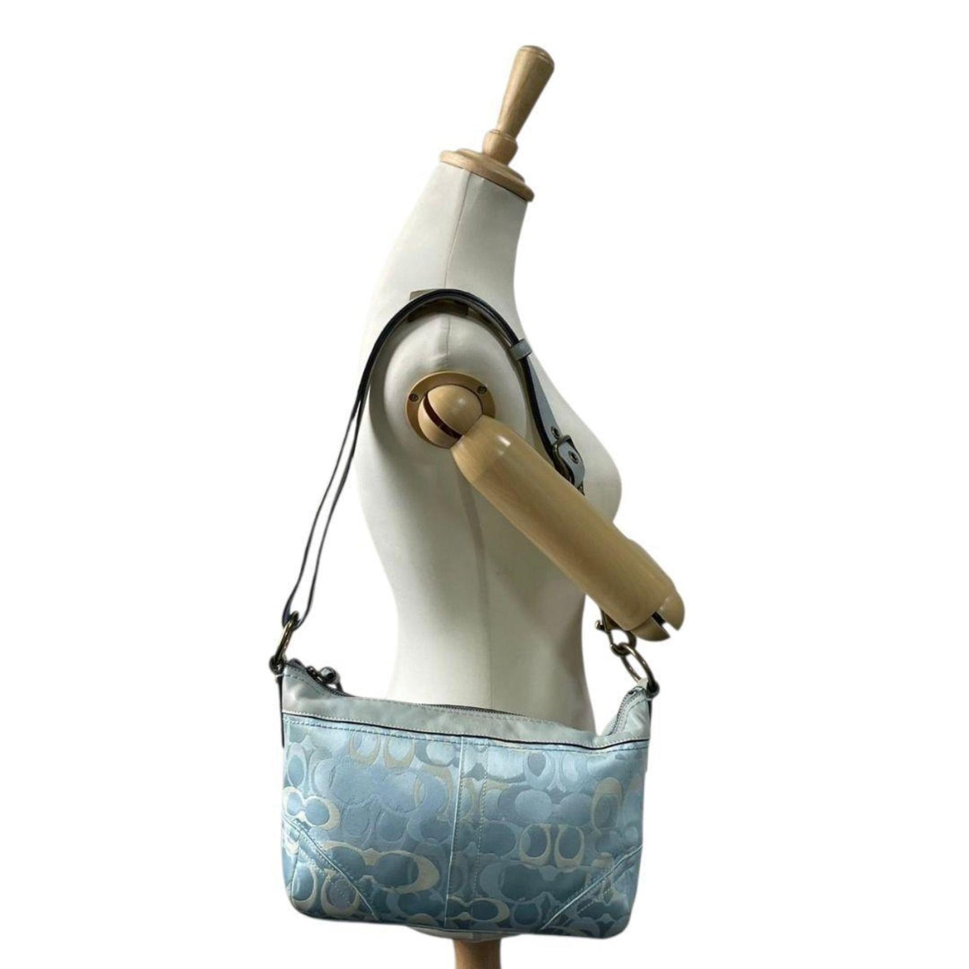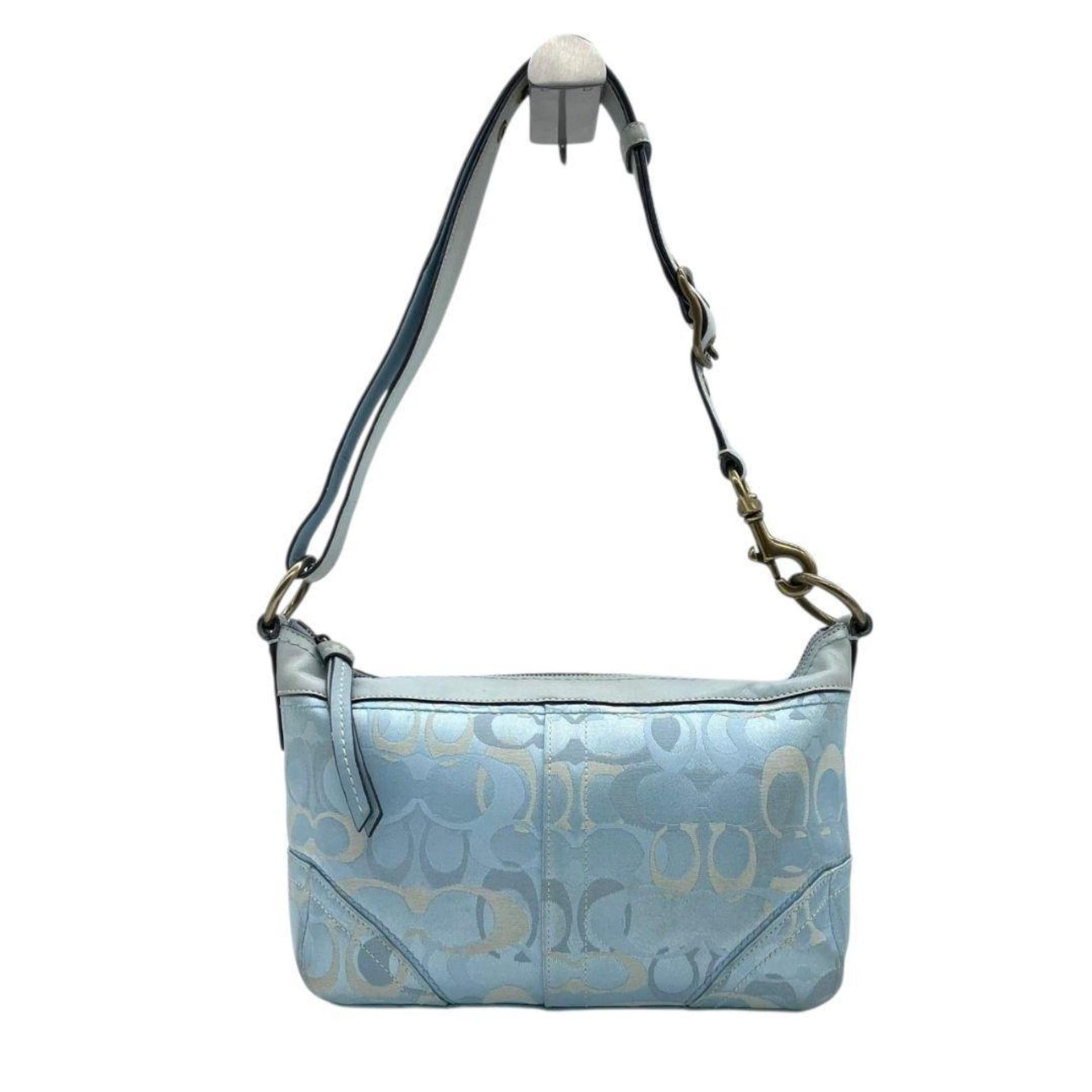 Coach Signature Hobo One-Shoulder Tote Bag in Light Blue, Canvas and Leather with Gold Hardware, Model 10379 T7